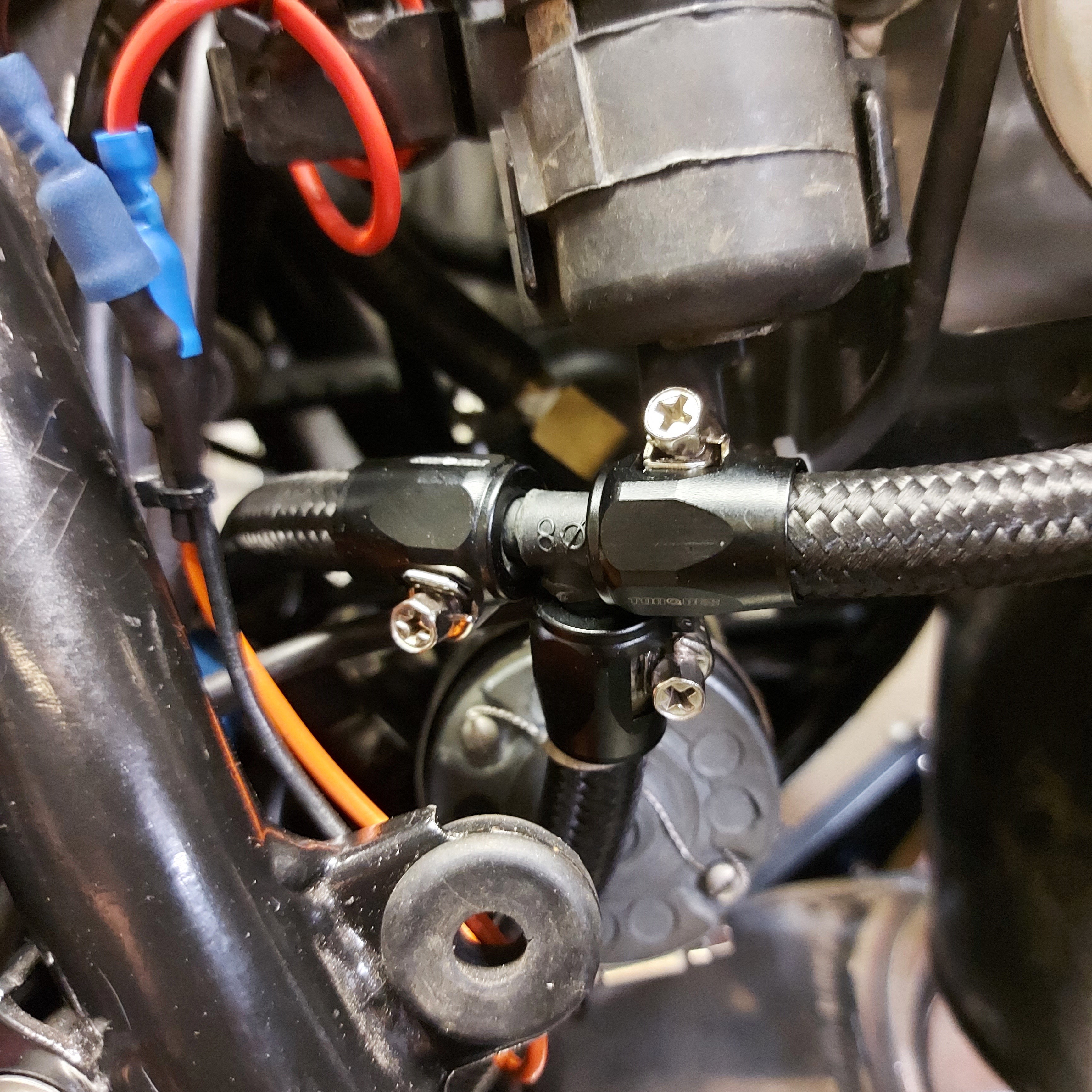 The rear brake's clear brake line hose had gone really manky, despite it apparently being pukka Hodna HRC stuff, and it's leaked some fluid out onto the master cylinder, so it was all taken off, cleaned up, repainted and fitted with some properly pukka 2375 Tygon that is allegedly impervious to brake fluid. We'll see about that eh.