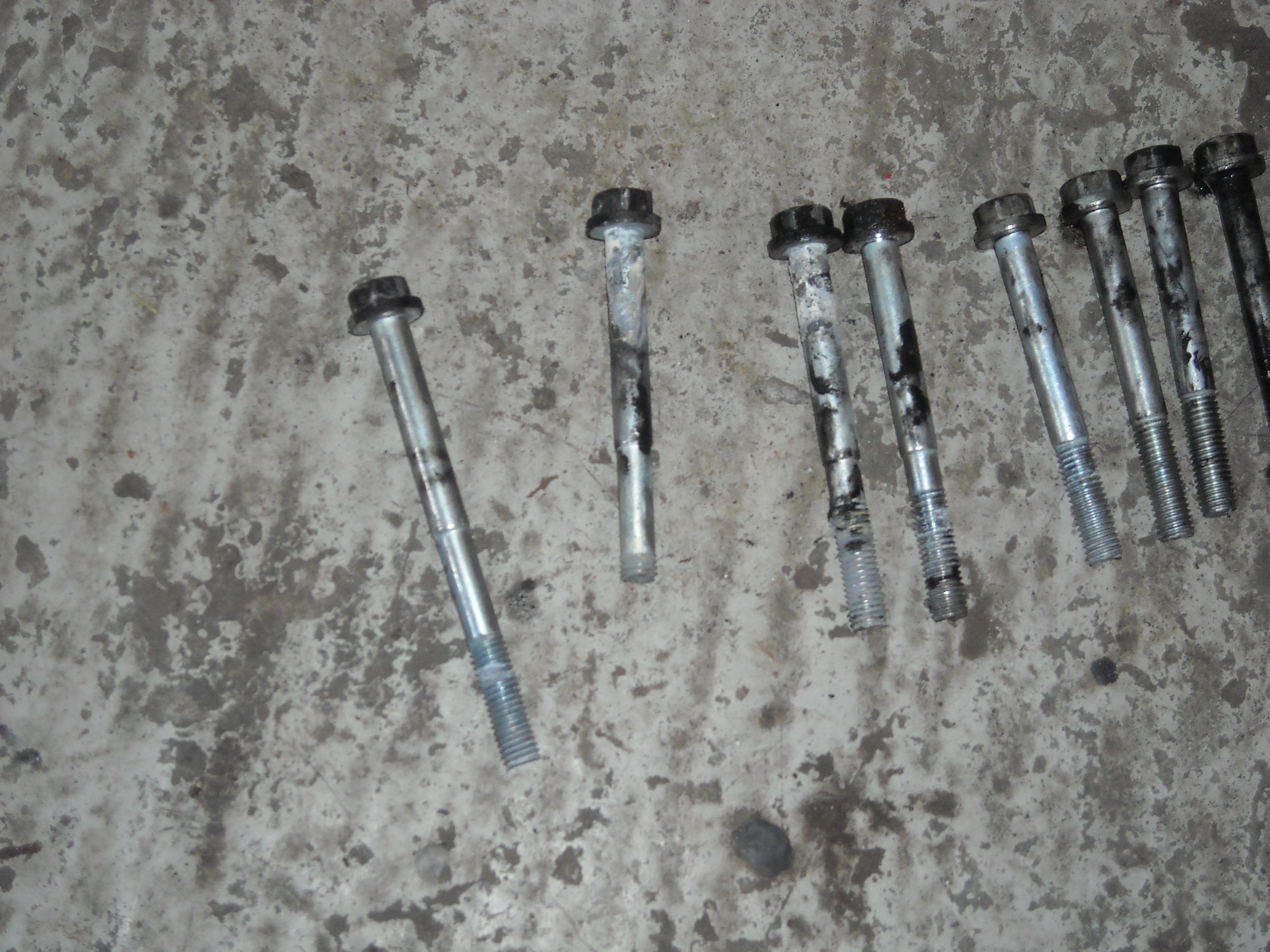 The small bolts came out without any problem but the larger bolts around the cranckshaft took more effort...and one of them broke off.