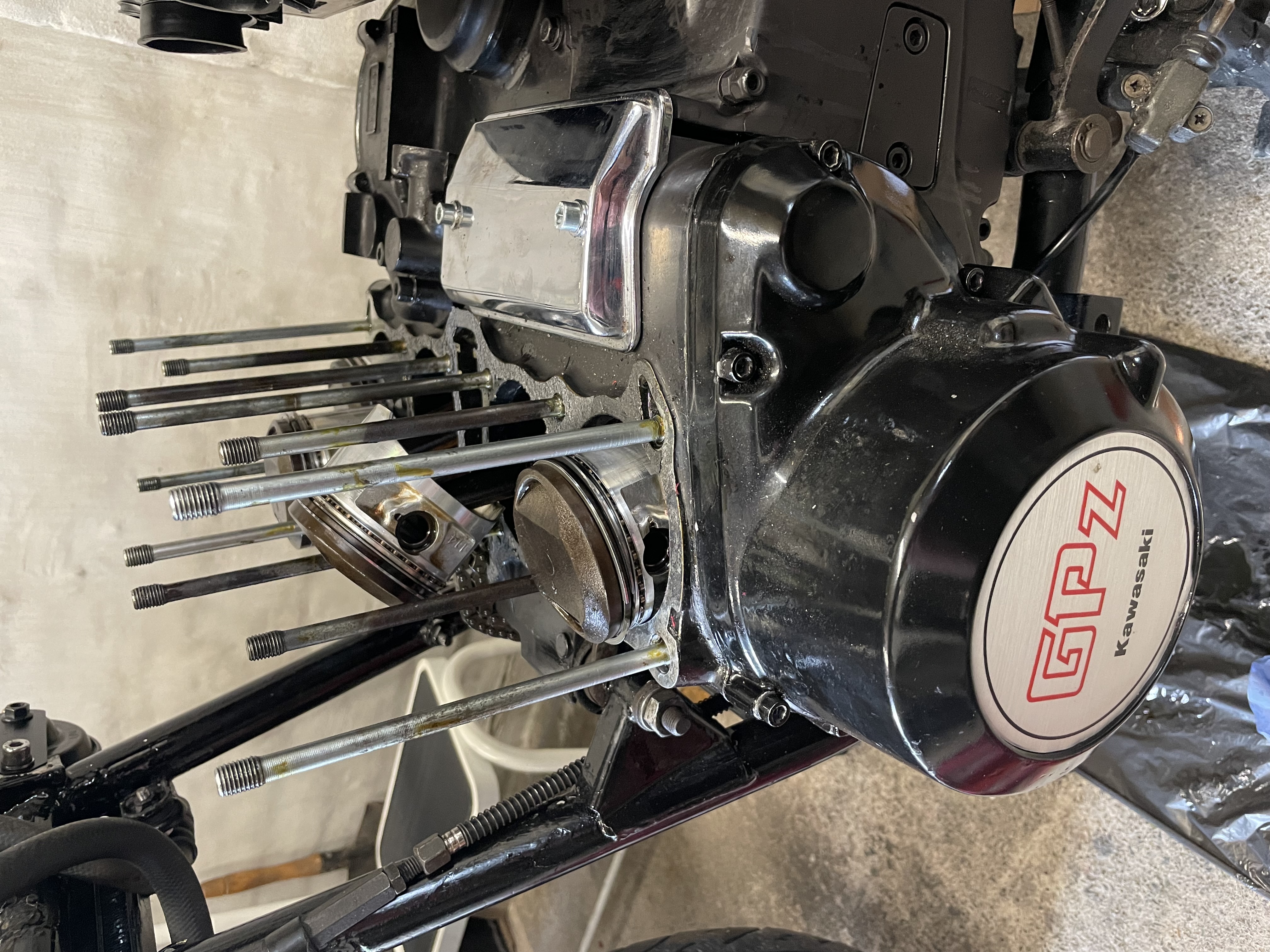 My intention was to get the bike running then return the paintwork to firecracker red. I pieced the bike together and got it running but it was a bit rough. It was leaking oil from the cylinder head gasket and blowing from exhaust number 2 so it was beginning to appear like a head off job :shock: