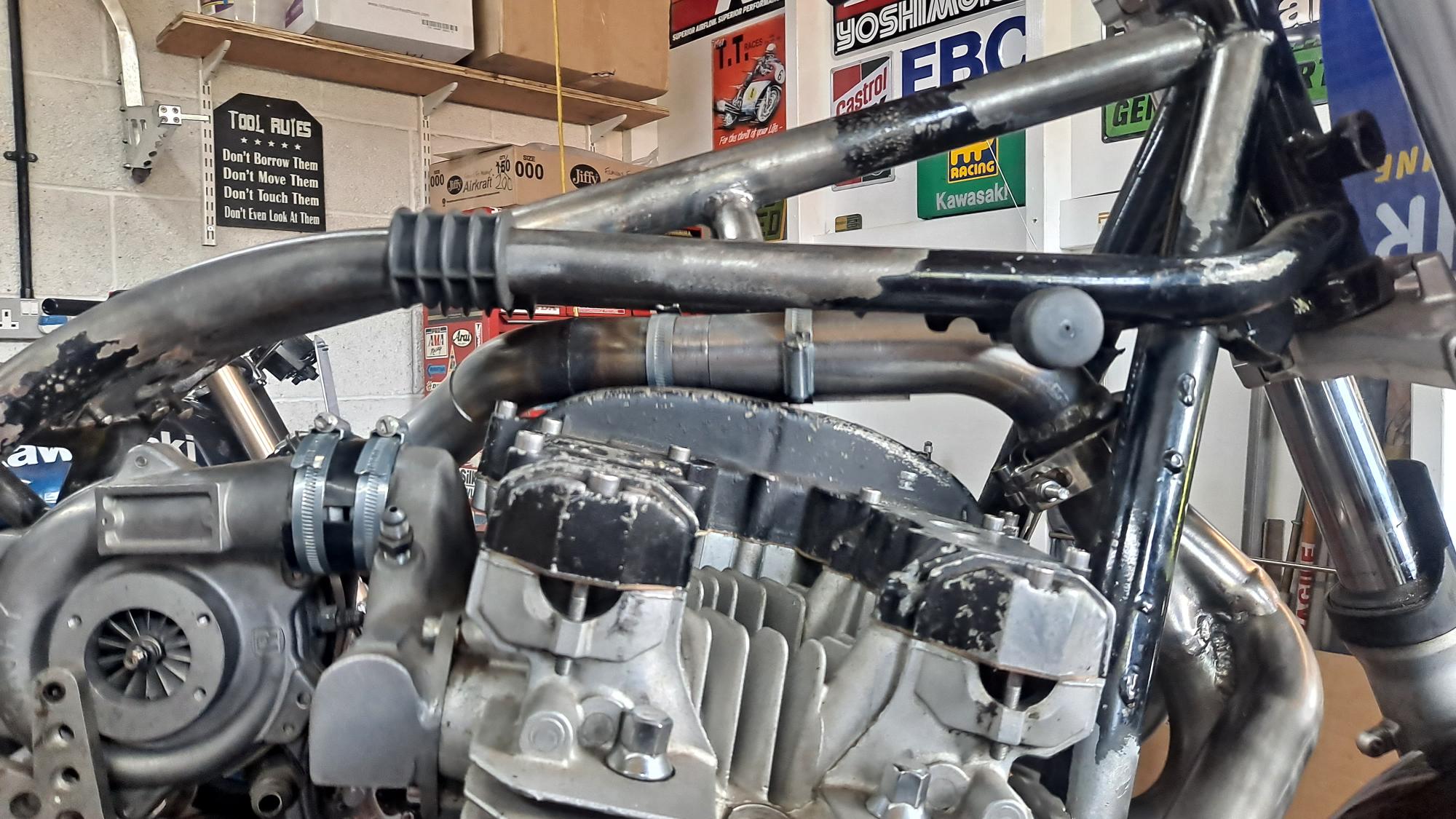 The collector will sit a little higher and further out so the original tin frame gusset had to go entirely which was on the cards anyway to be replaced by some bracing tubes and this will allow a better flow of air over the motor.