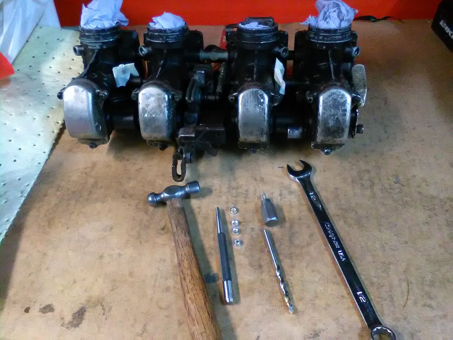 Here are some pics from today, got to drill & remove air screw blanking plugs & a pic of #2 carb bowl, I have measured the internal bore of the carbs & its 28mm.