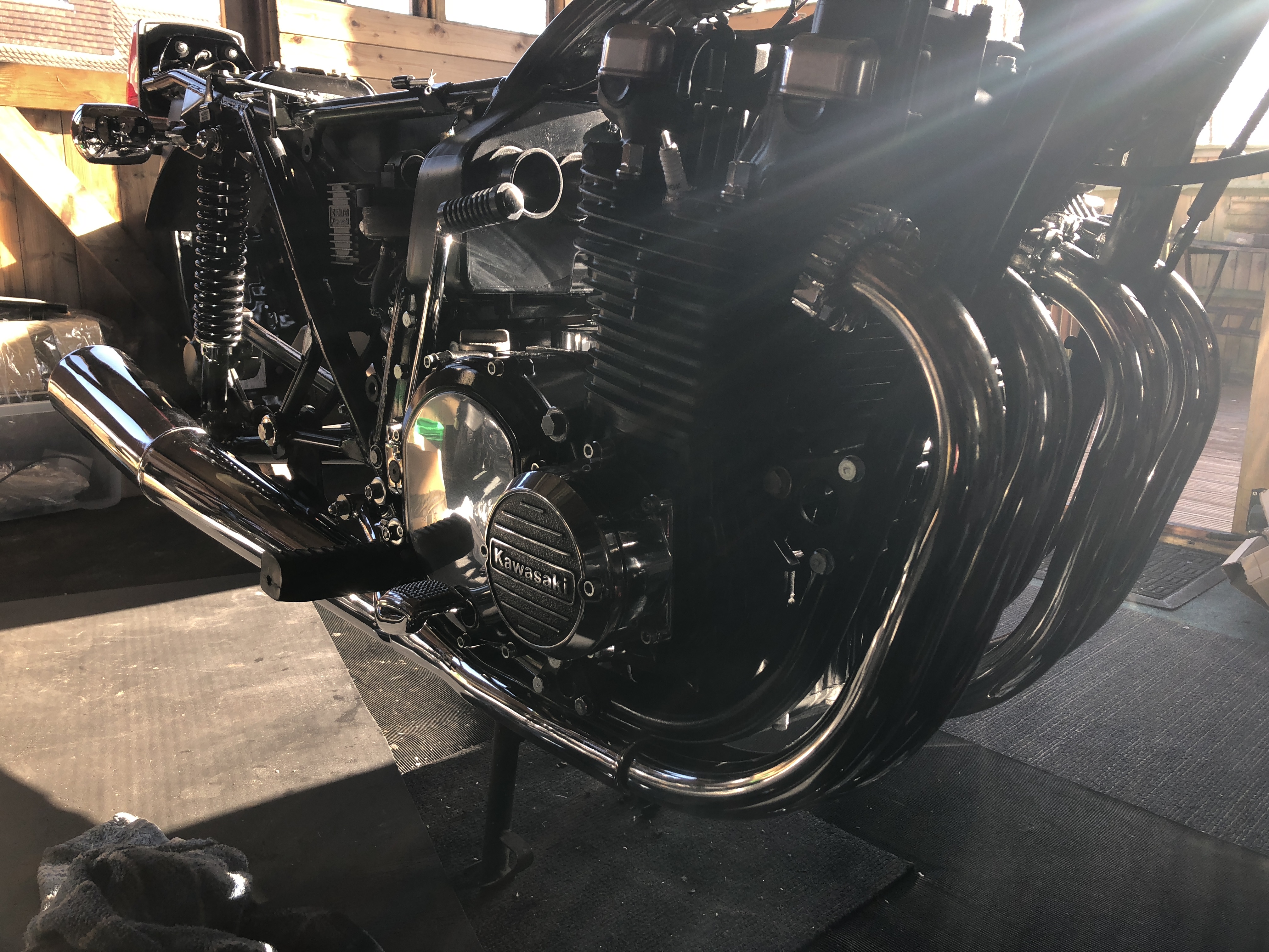 Little bit more progress today. End of 4-2 pipes repainted in VHT. Painter has finished the body set and wheels and they’ll be back with me by the weekend.