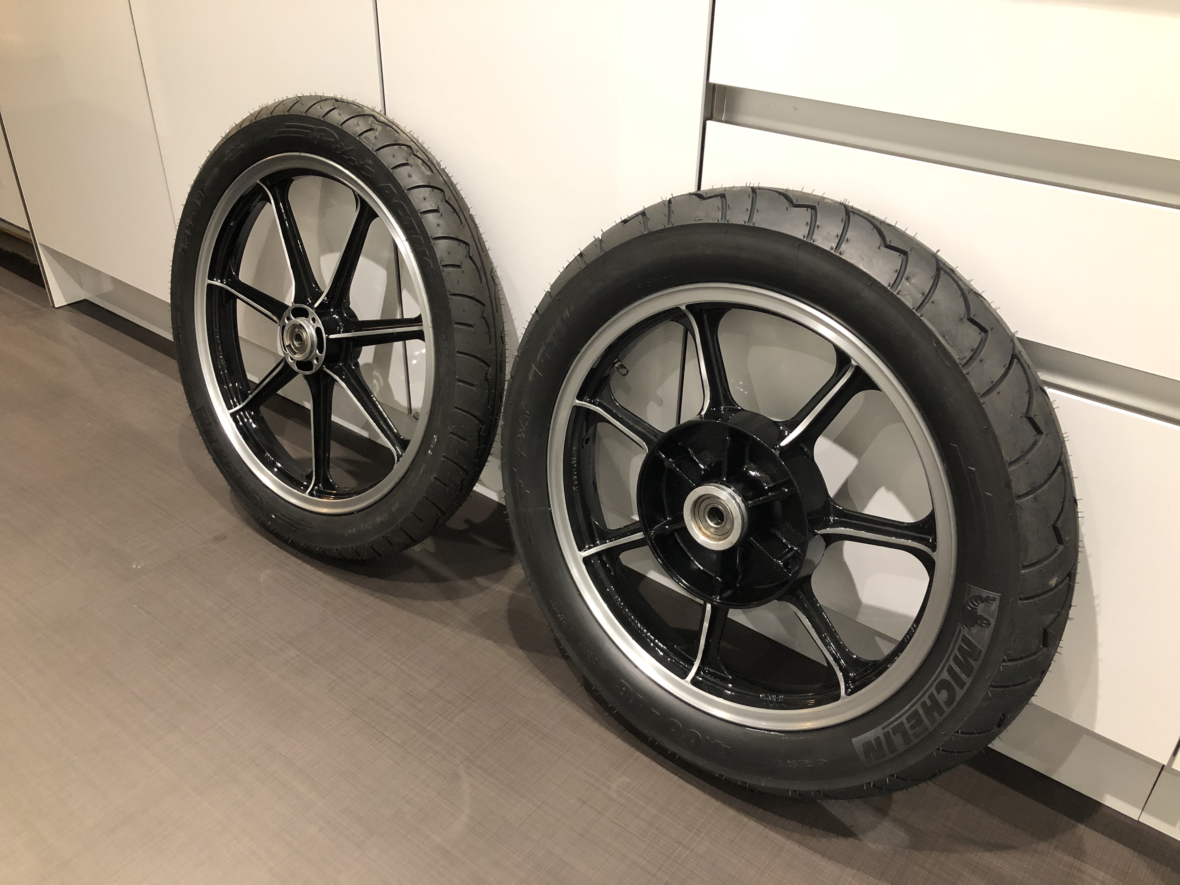 New rubber (Michelin Pilot Sport) fitted to refurbished original wheels (stripped, painted, diamond cut, lacquered). Looking tidy...
