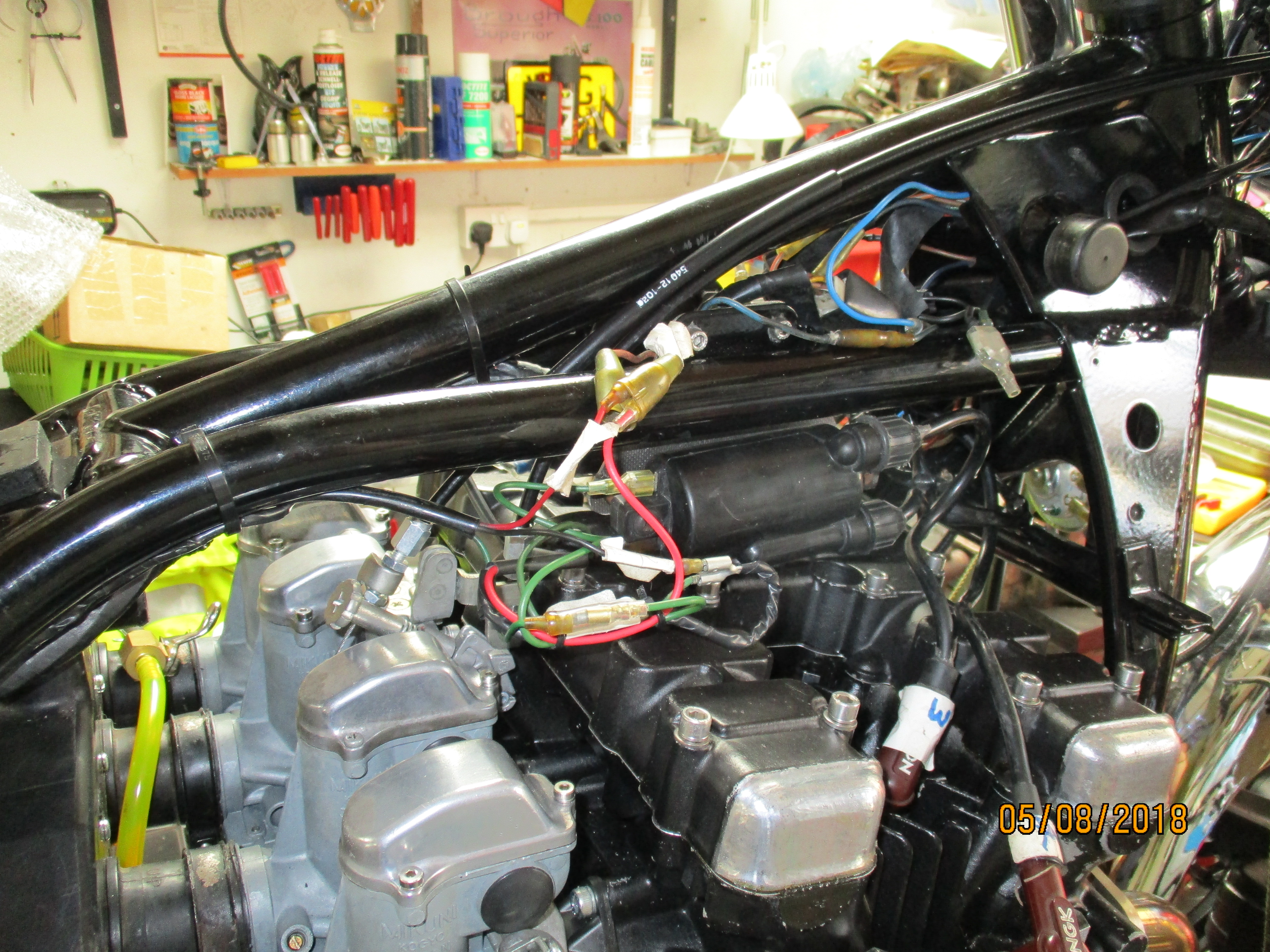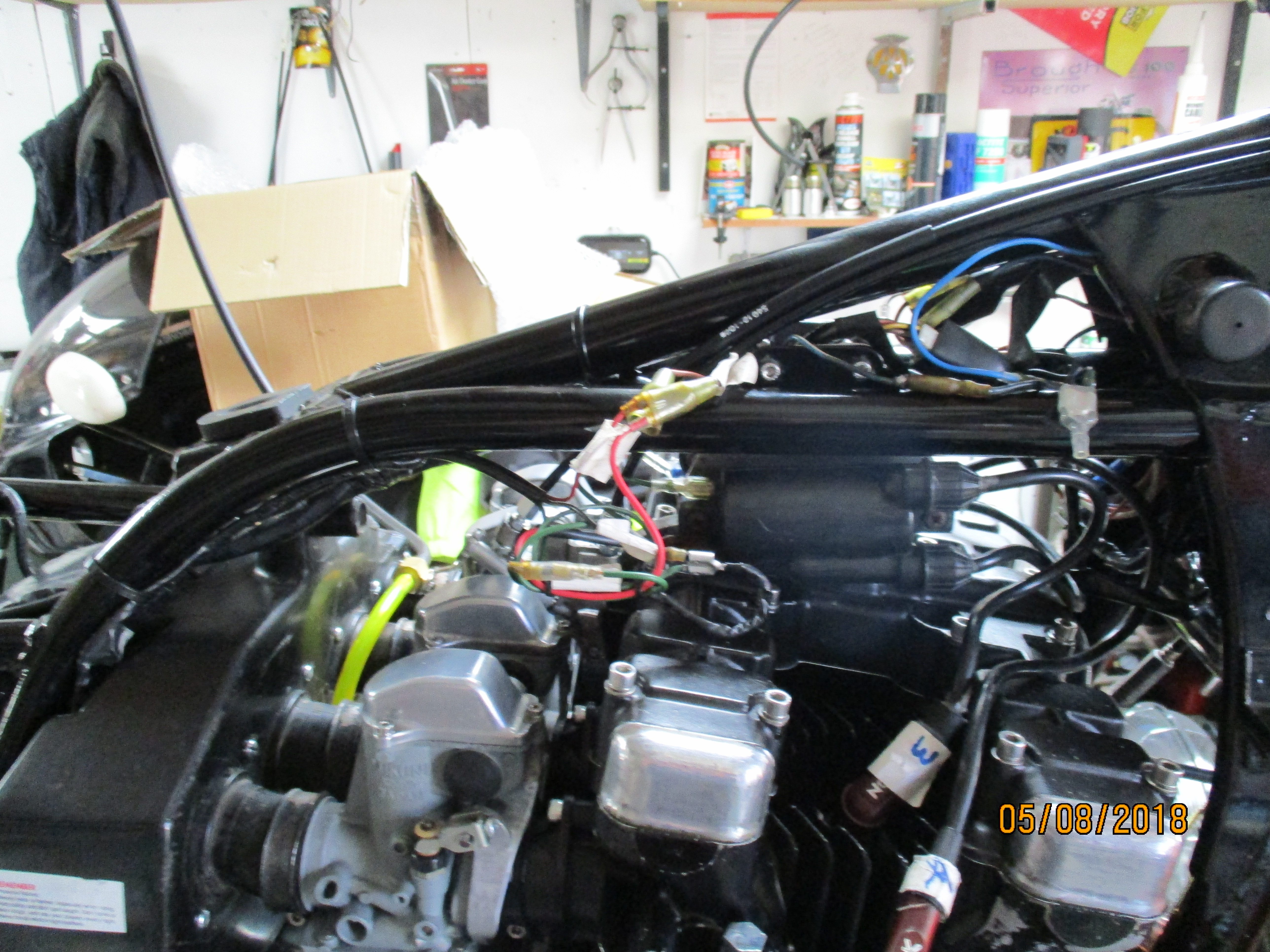 The carbs have been completely rebuilt and the intake rubbers are pattern parts. What is happening is that after the throttle is blipped it takes a while to return to tick over. But once it is at tick-over it idles quite nicely, i sealed the carb rubber to cylinder head with silicon. The carburetors i believe are off a kz1000 b4 having x 2 fuel inlets instead of one.