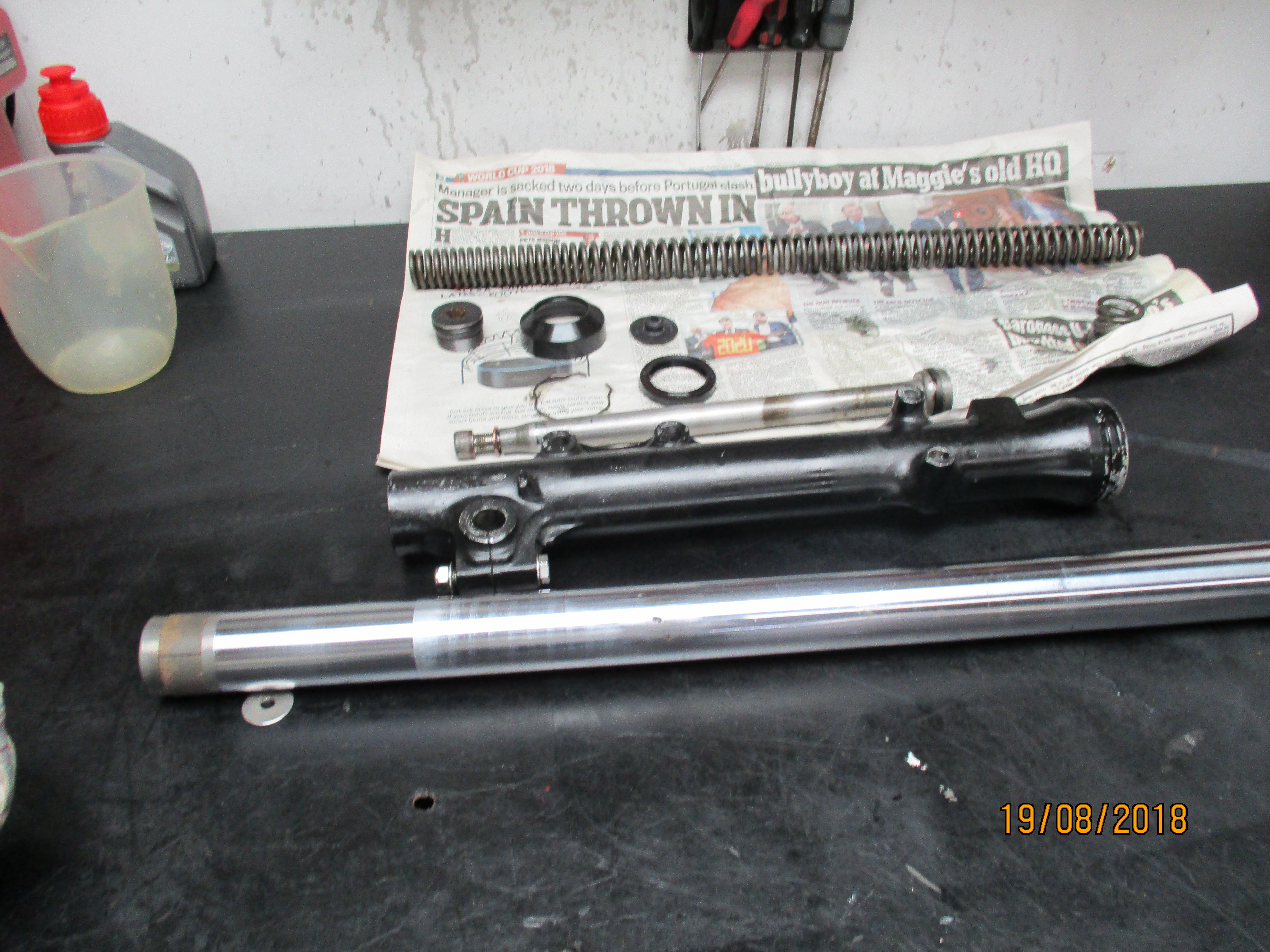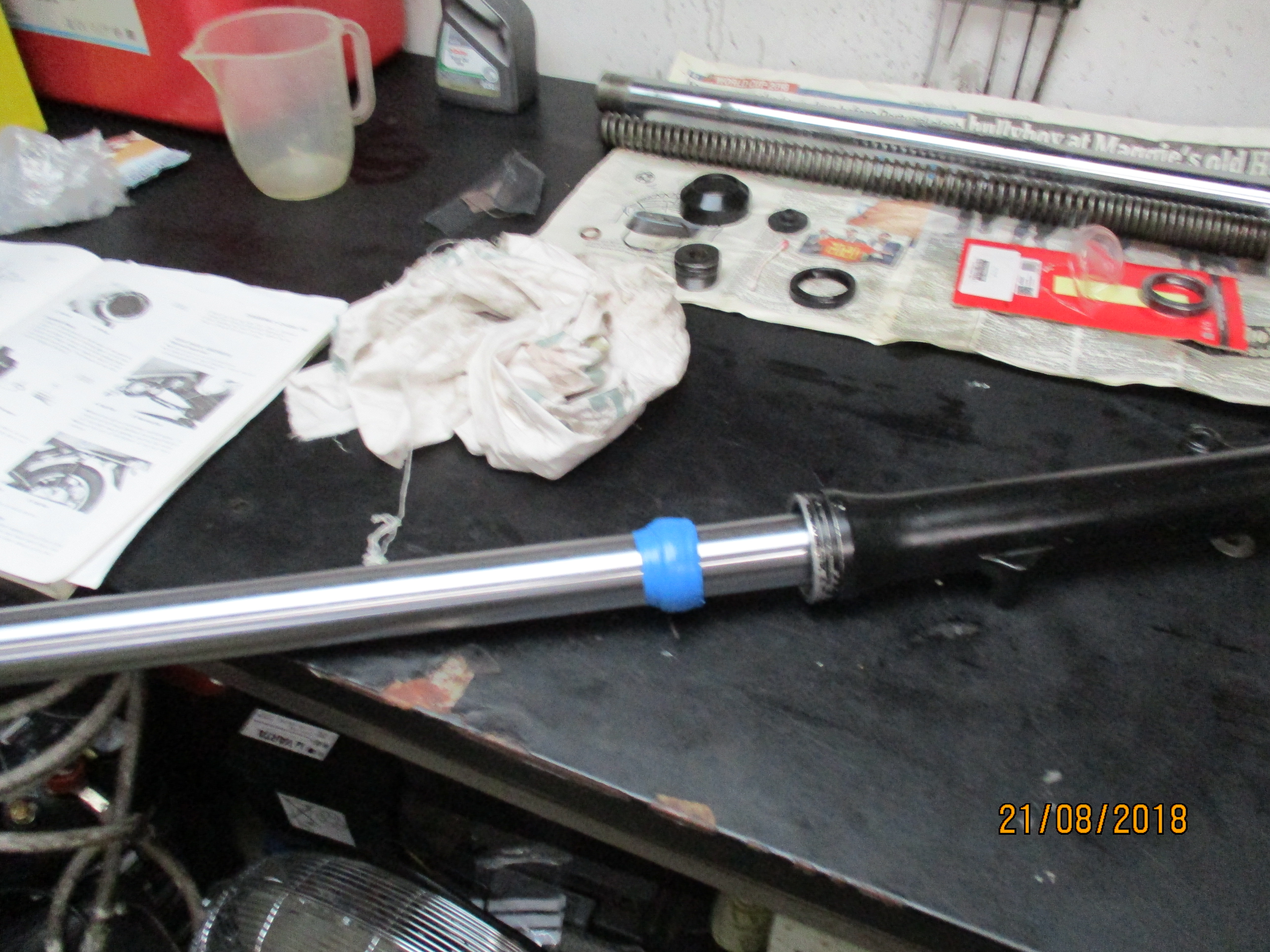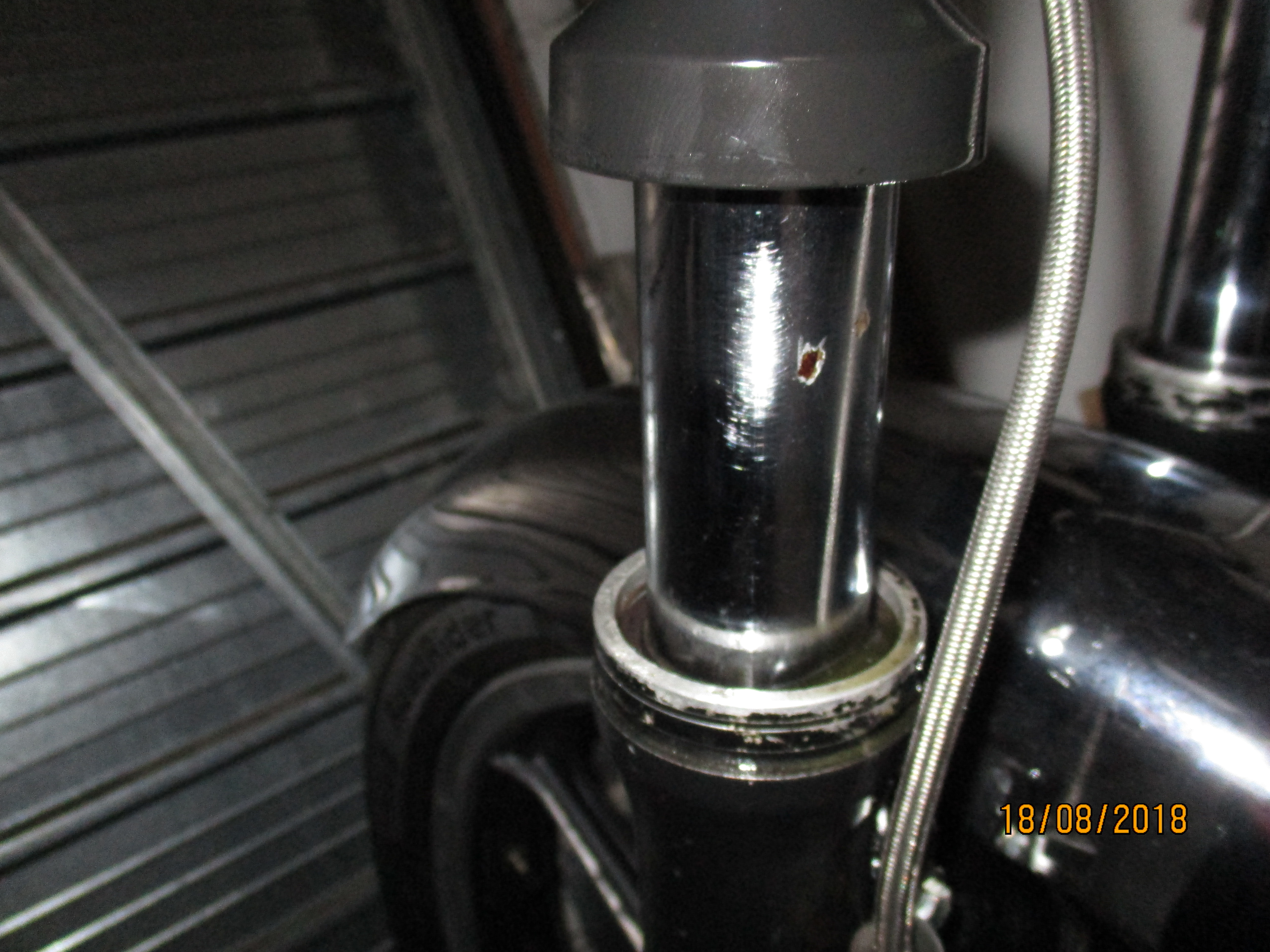 During the time I was writing a reply, you allmost fixed the little problem! Good to see that you allso put a new stanchion in it. Once the chrome is damaged it's useless to place new seals, they get damaged after a few miles and the work you did is lost. The rubbing of the sharp edges causes damage to the seal.