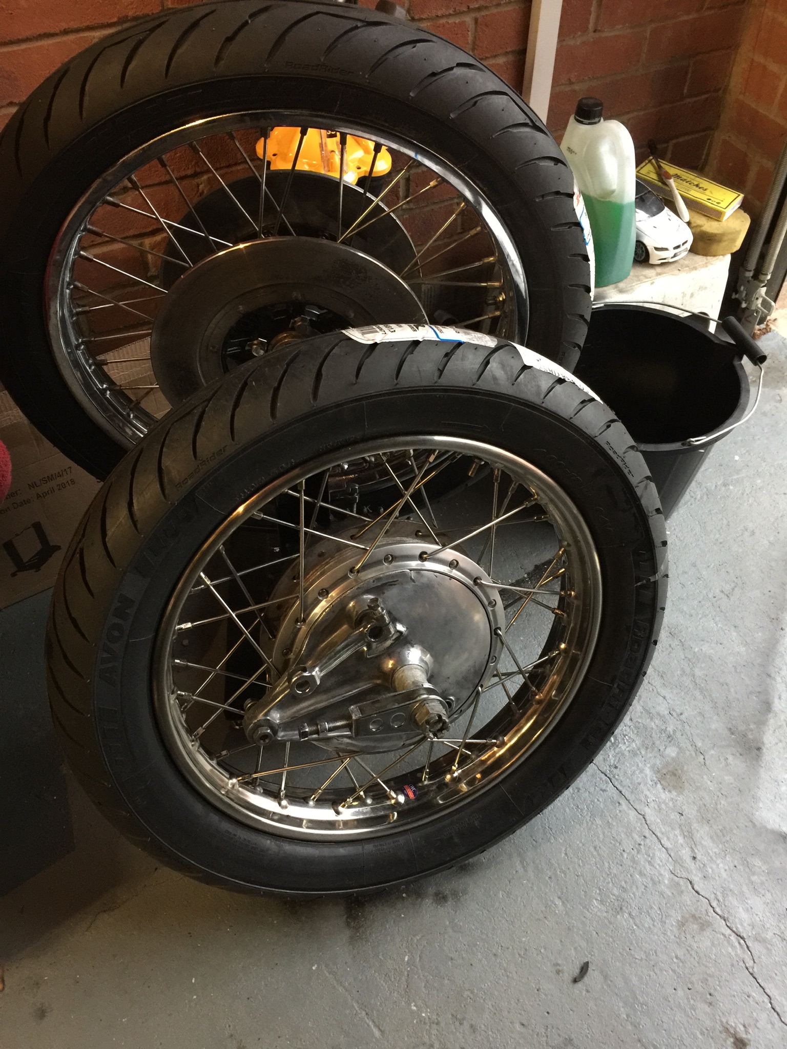 Latest jobs have been to fit a tyres to the re laced rear wheel..