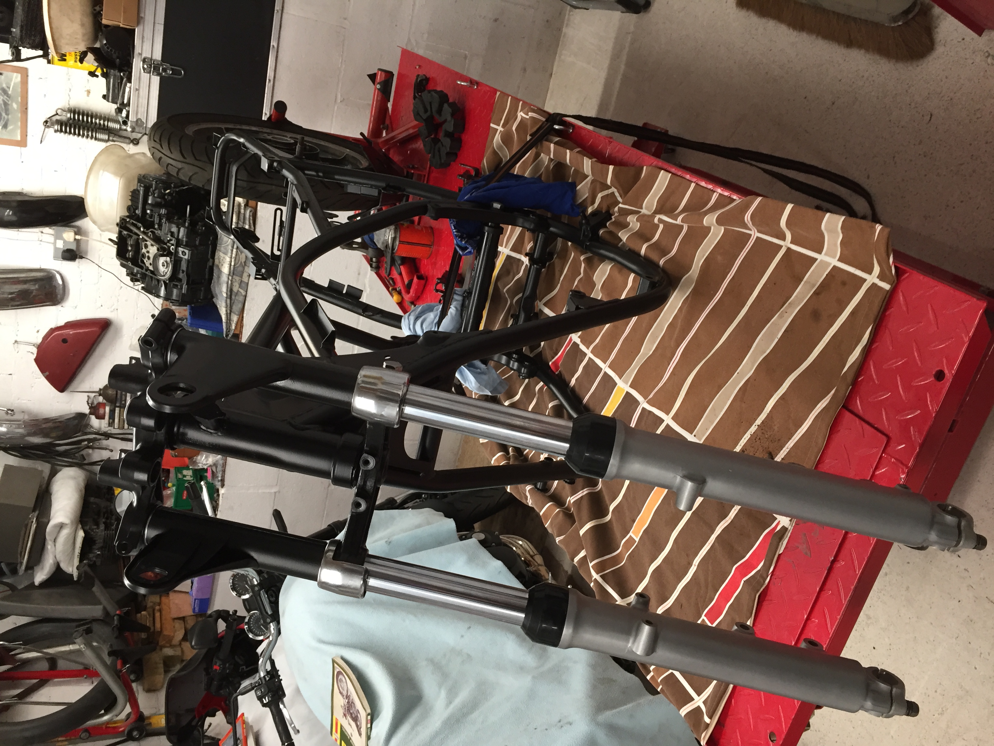 to put together new stanchions seals etc , still cleaning engine checkin parts and ordering as req