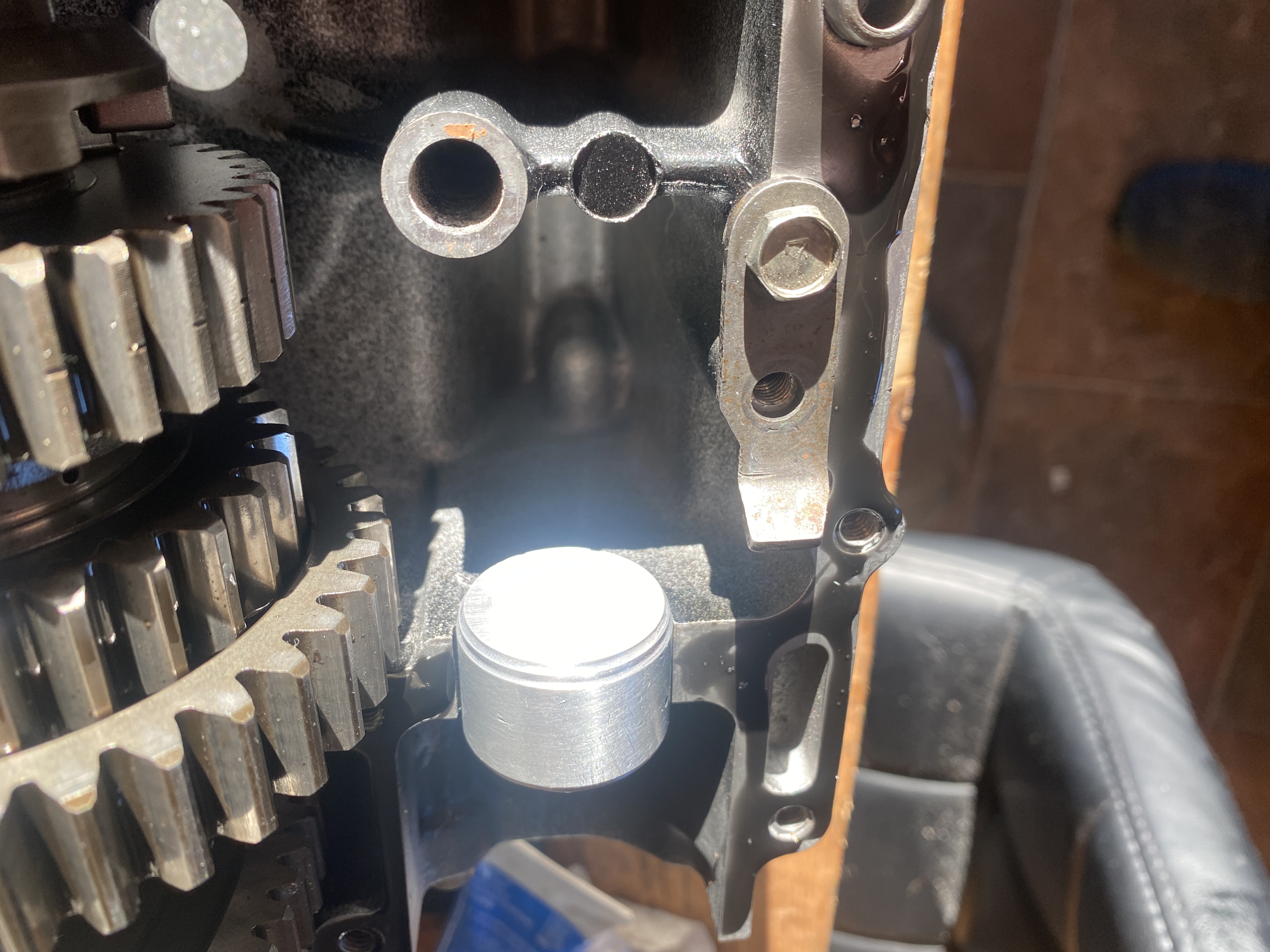 Worked on tying up the bottom end of my Z1000 st chain conversion, was sent the wrong heavy duty cam chain, took an age to get it back to the states and then back to me, then work happened. Installed the APE heavy duty main Bearing Studs, new bearings just about everywhere and new case bolts too. Before i bolted it all up i made a plug in place of the kickstart that im not using, that way the kickstart chamber wont fill up faster than it can empty.