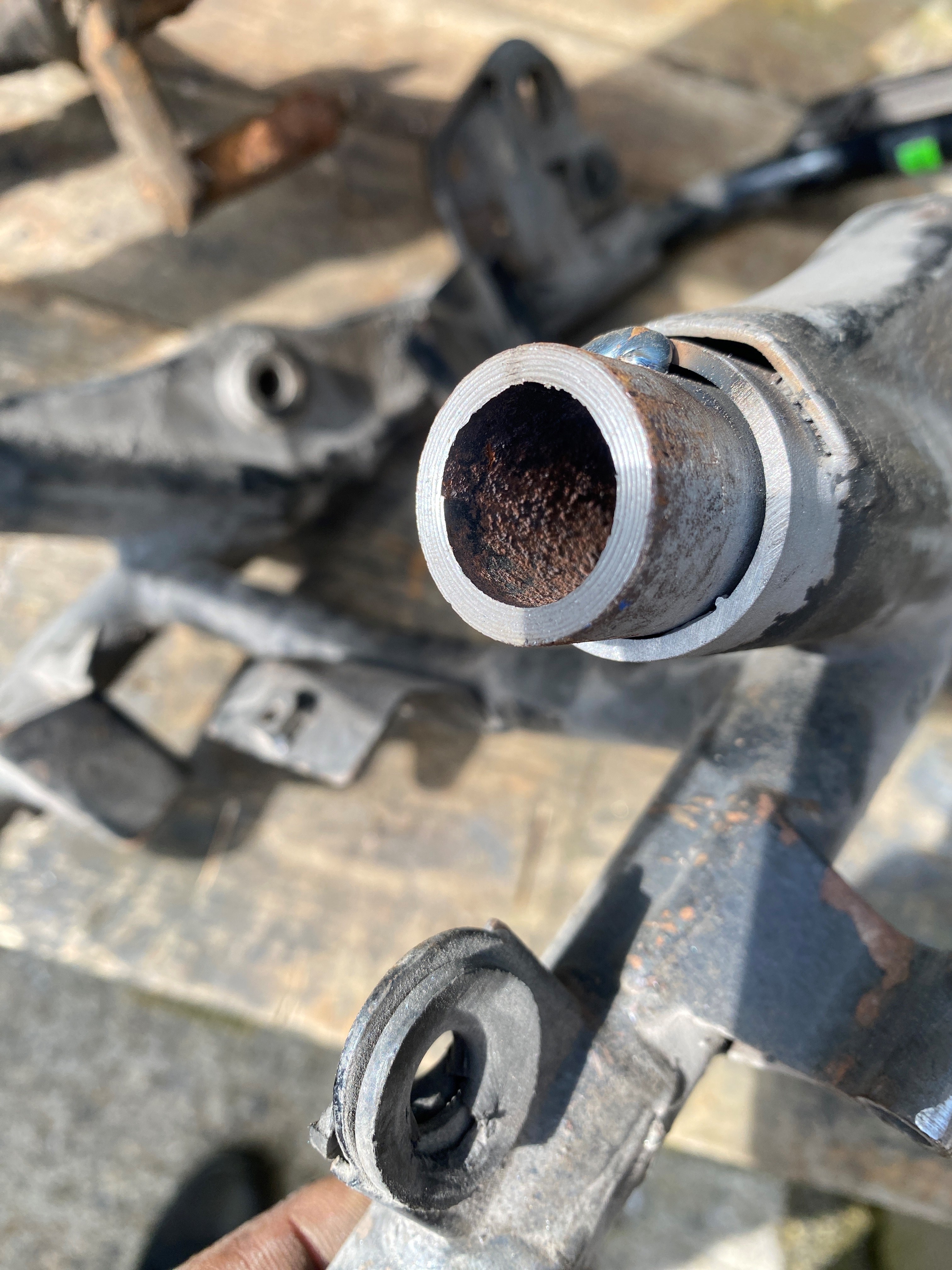 I kinda just powered on through it, didn't stop for photos.. anyone interested in how just ask but the jist is i made 4mm wall lugs and a jig, left 5mm space for weld so when it was jigged up the frame ends were welded to both each other and the lugs. Tomorrow morning it will cutting off the crap from the old butchering and full on bracing.