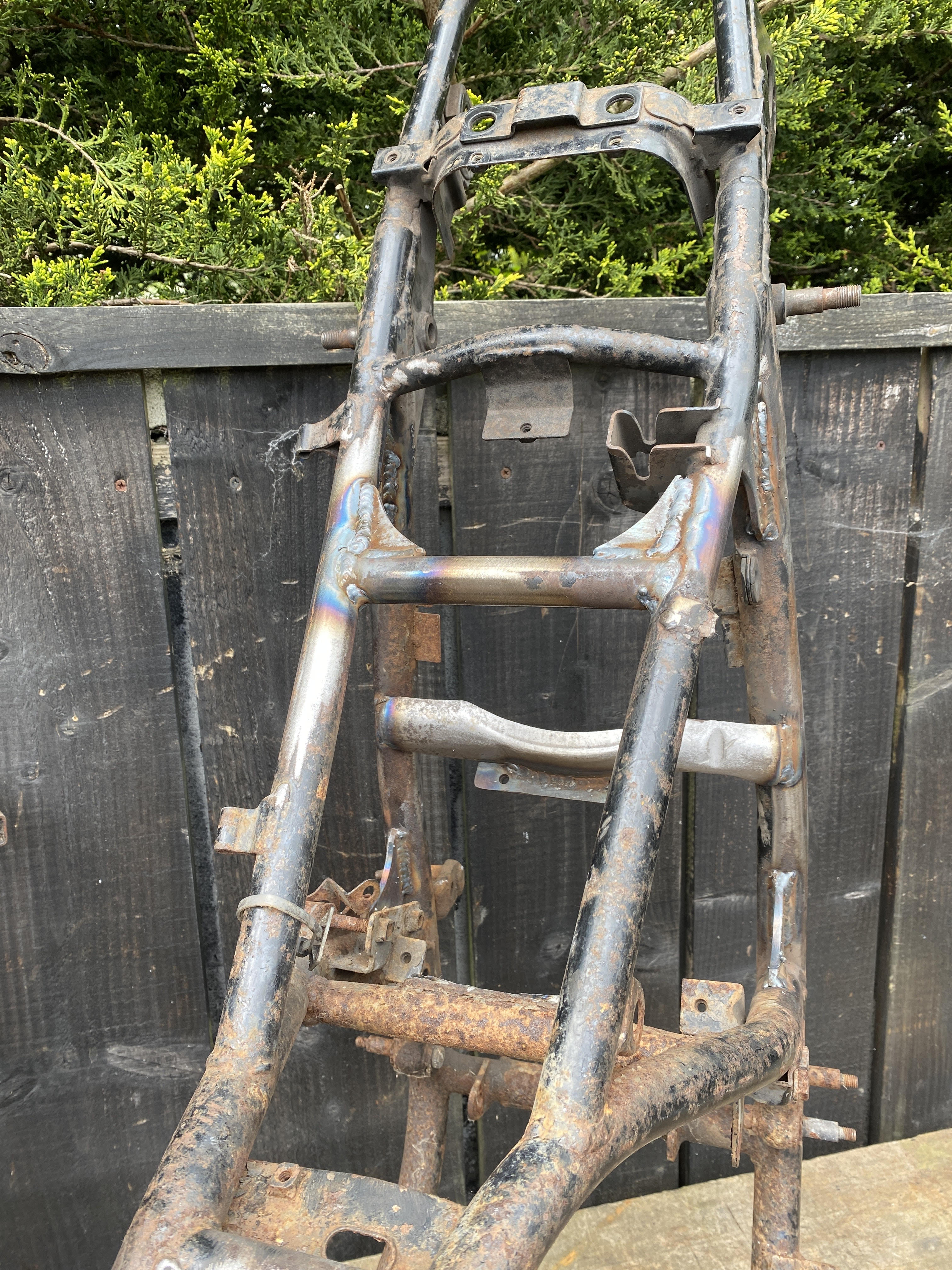 Then weld it all on in all the usual places, is never going to be a stock bike again so what works works.