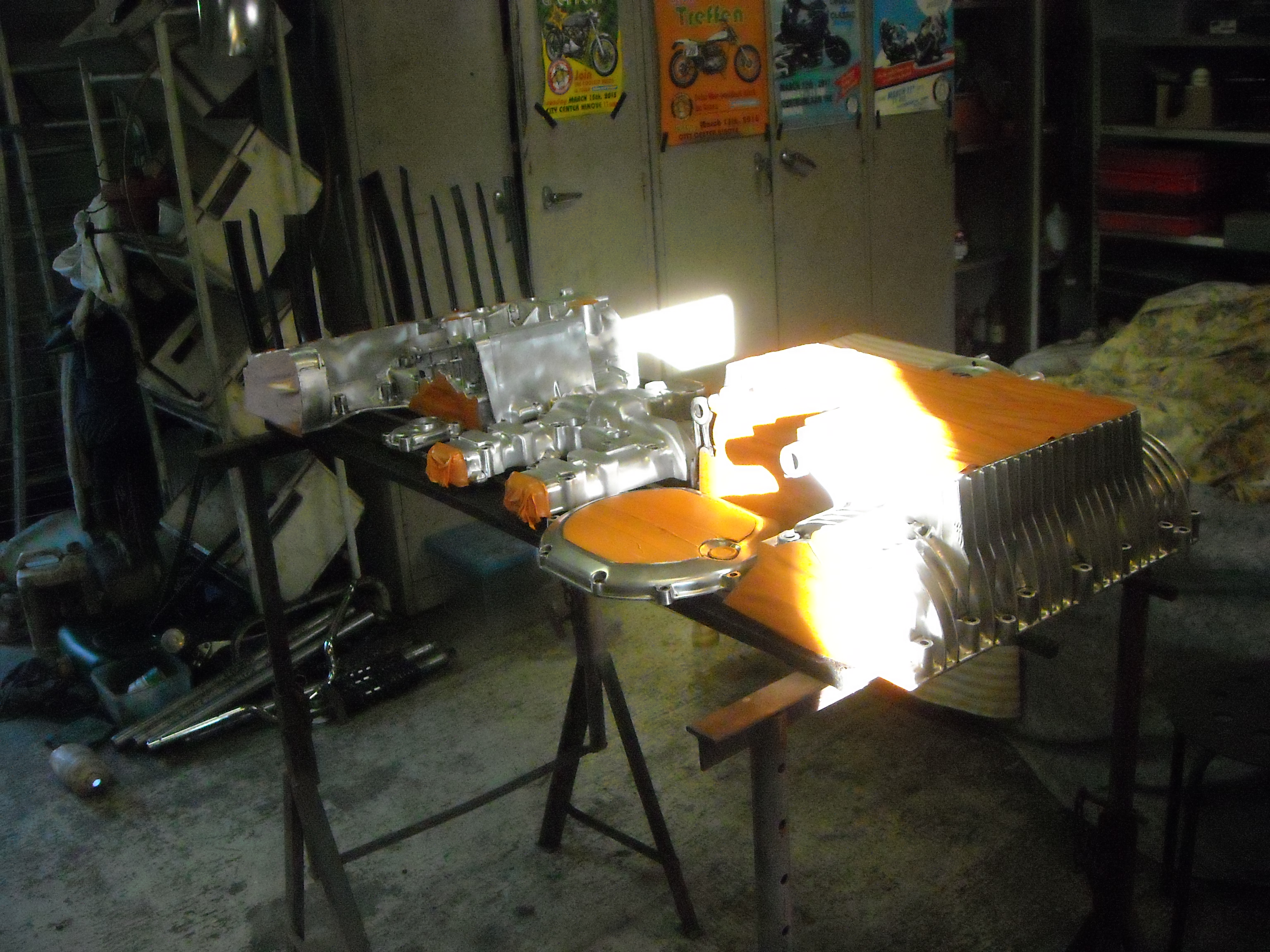 In between cleaning and degreasing I also found the time to polish and to add a protective varnish to the cranckcase covers.