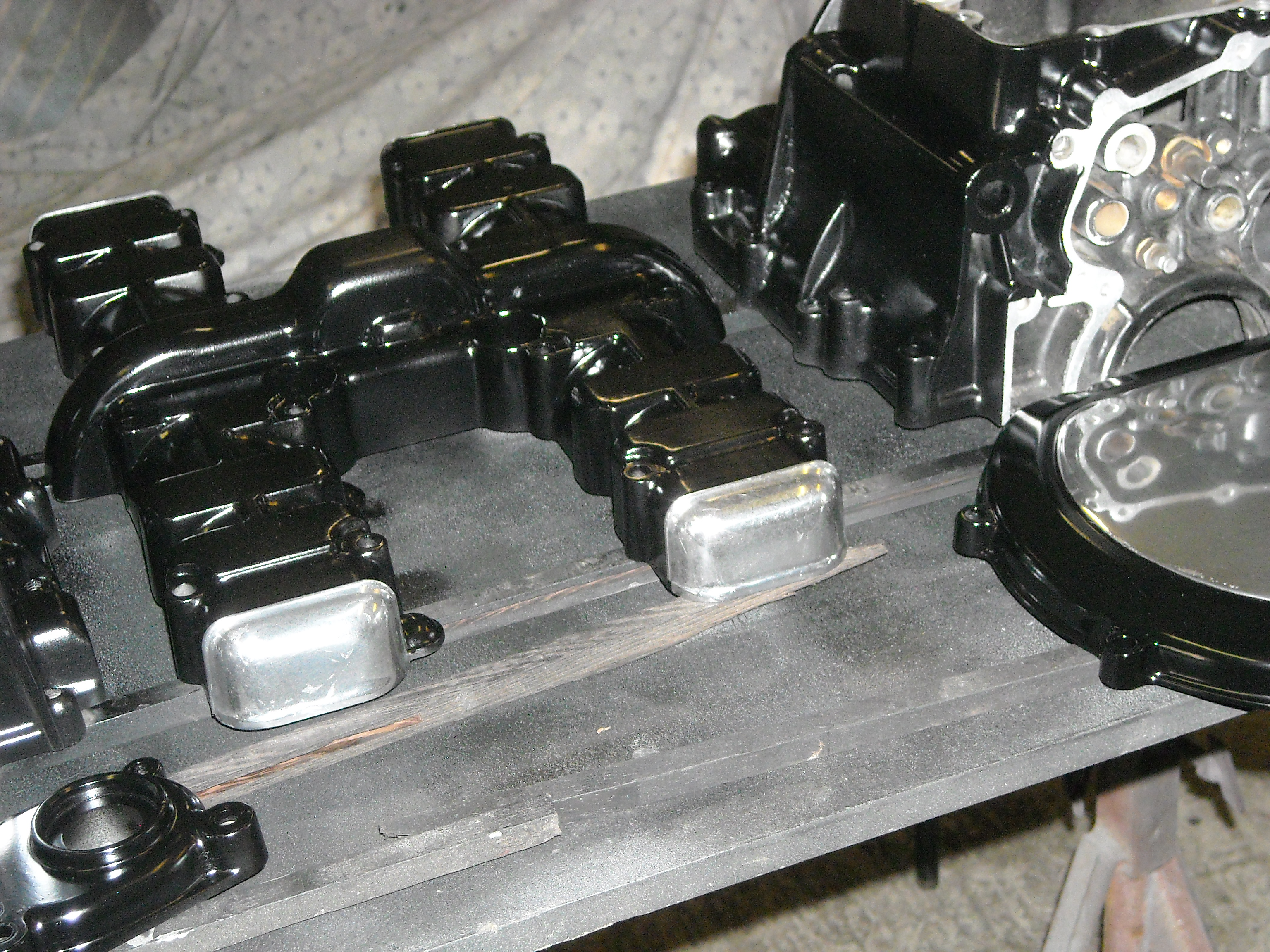 In the mean time the cranckcase covers were baked in the oven to cure the clear coat.
