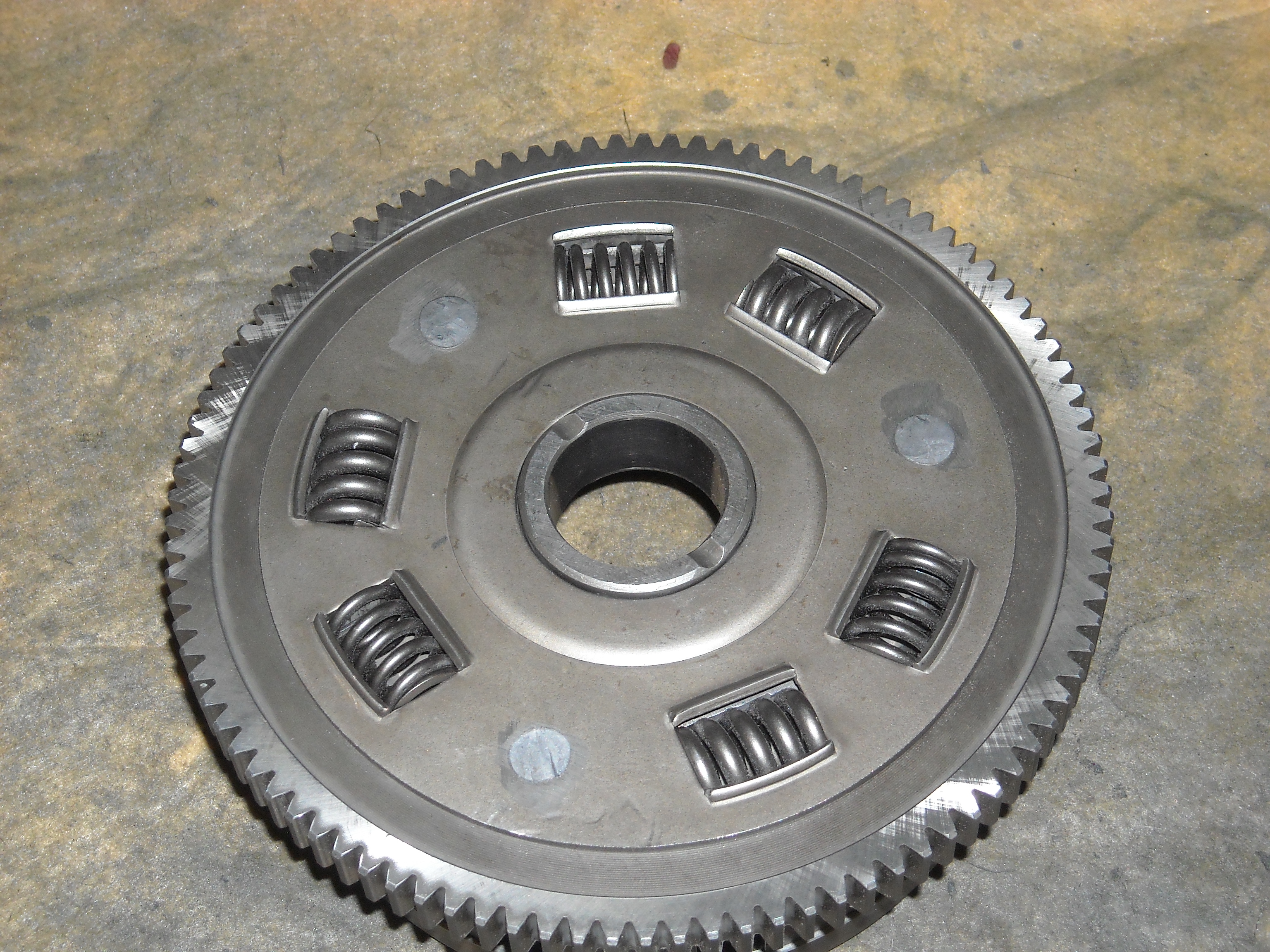 The thick spring goes into the rectangular hole of the inner disc so it has a bit of space compared to the clutch basket.