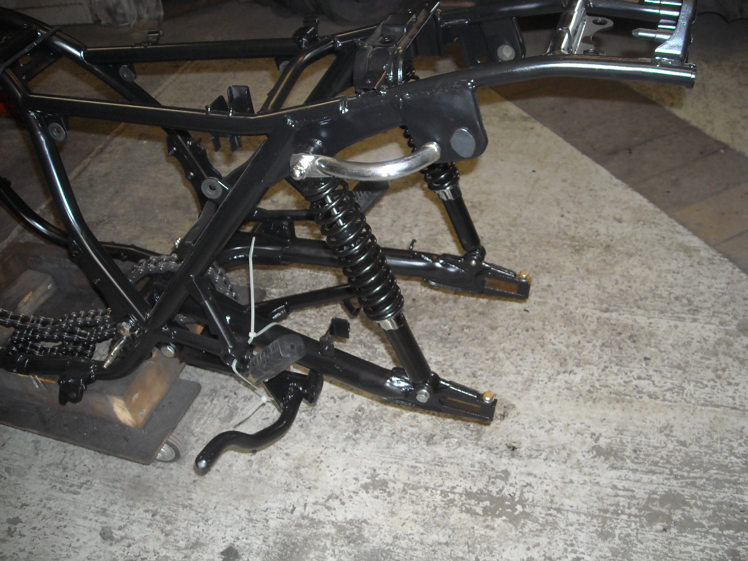 The swing arm was first, followed by the rear shocks and the main stand