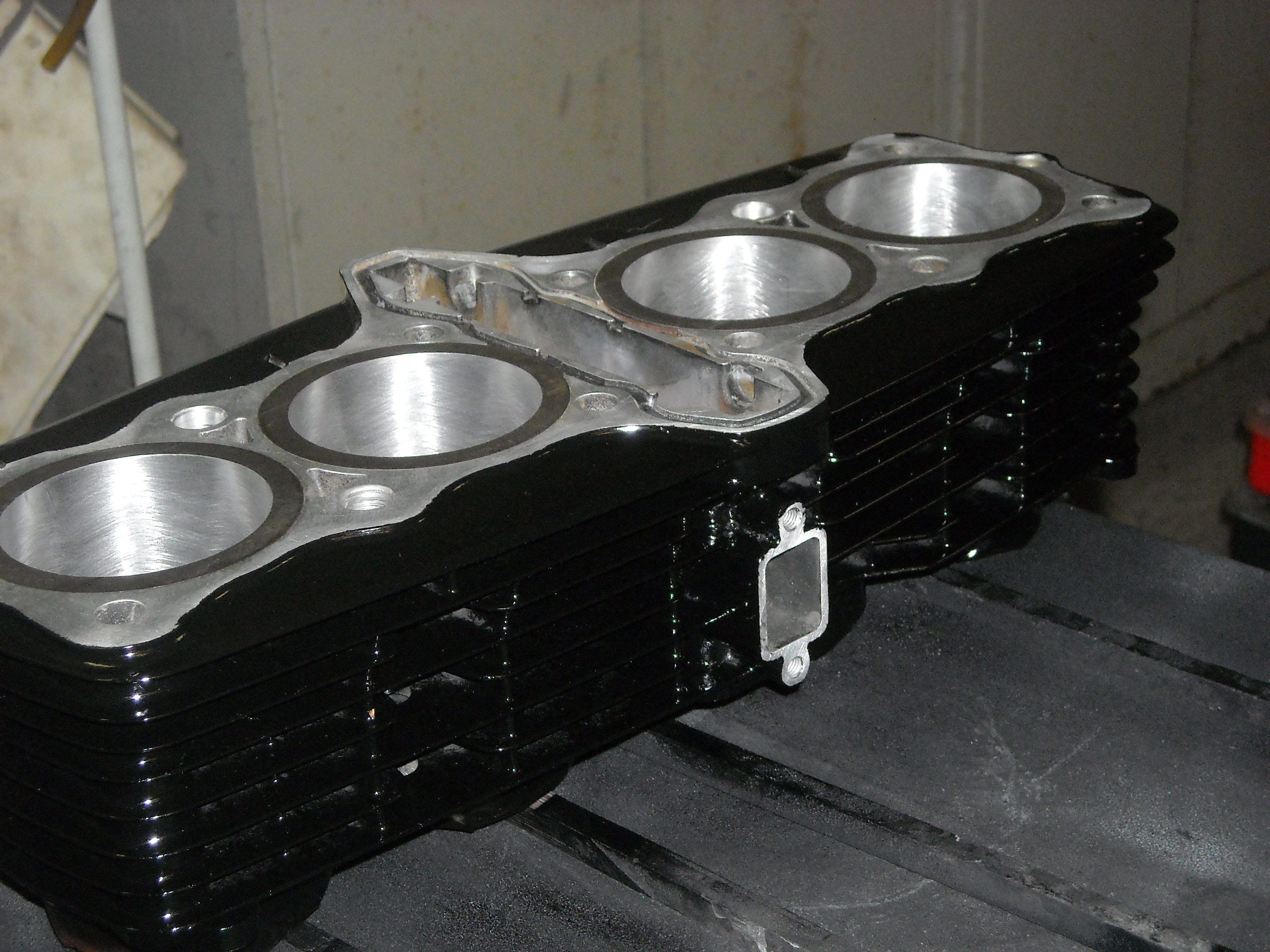 Perhaps some of you can see that the cylinders are honed too. That's necessary when new piston rings are used.