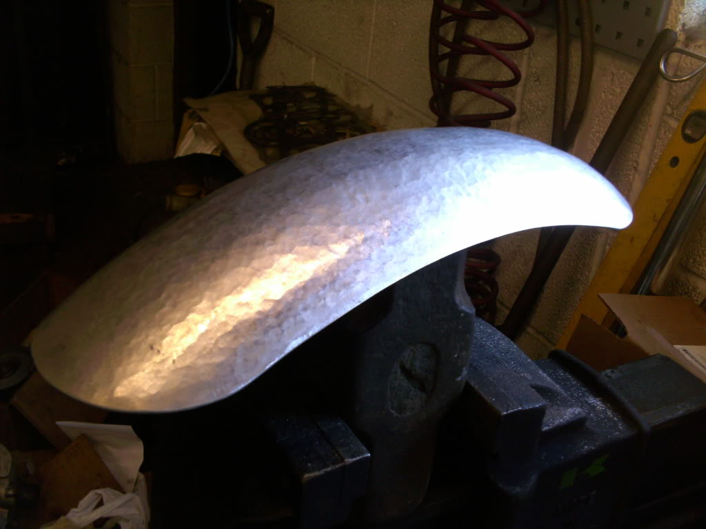 Decided to go back to plan A and have a crack at whittling some of that alloy road sign Guesstimated the shape i needed , cut it out and beat the crap out of it for two days until i had ....