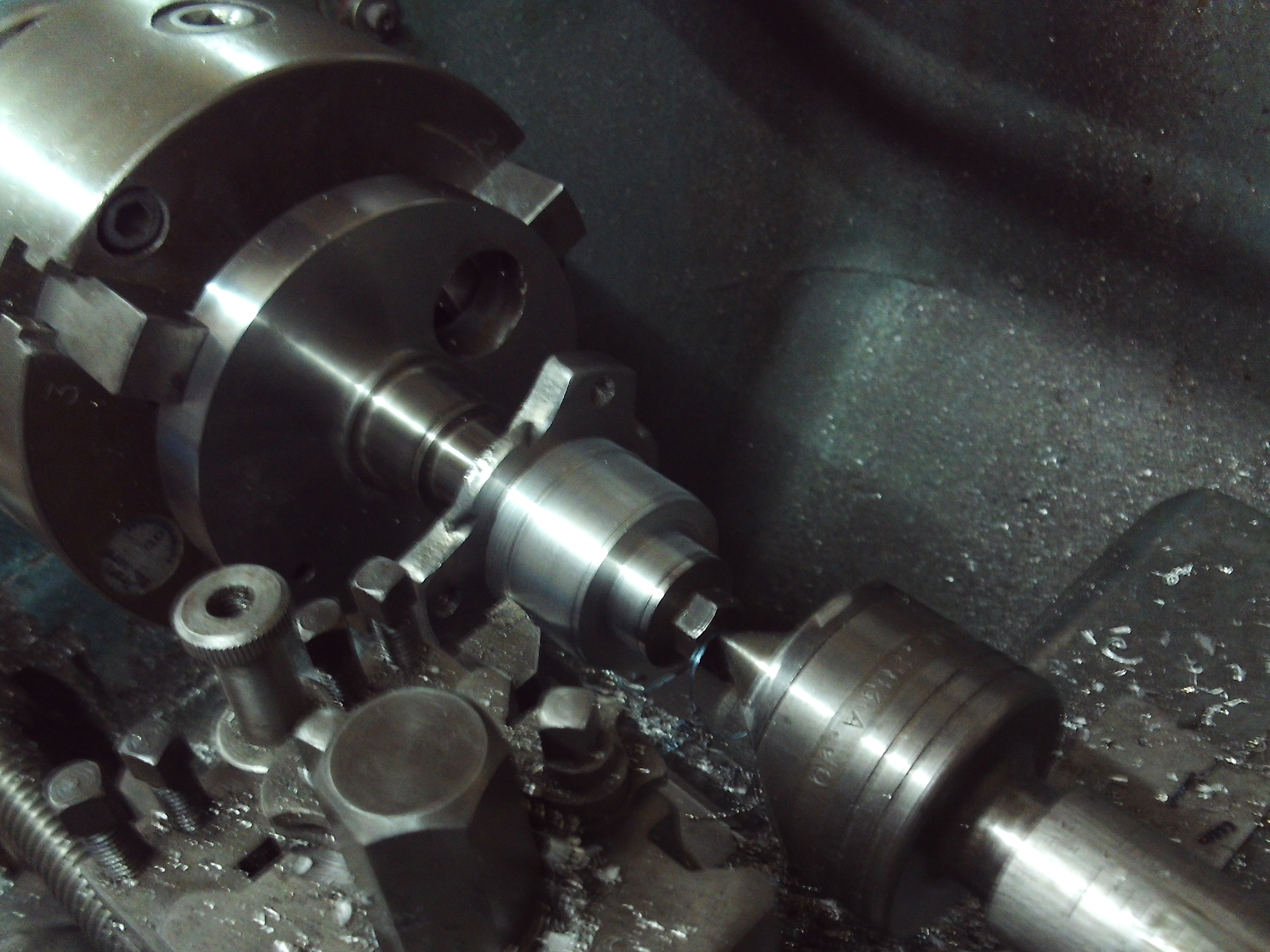 And used the end web from a damaged small taper 1000 crank clocked up in the lathe to mount it.