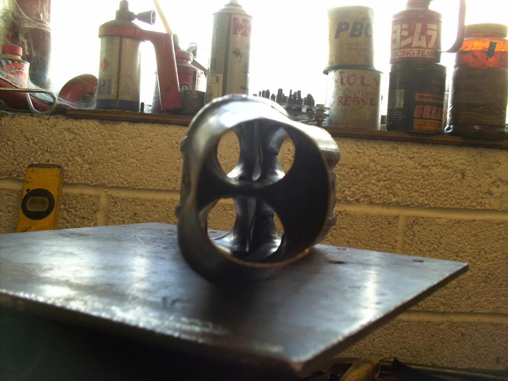 Four short lengths of exhaust pipe were cut and some unknown stainless flanges i had lurking about were bored out to suit the pipe