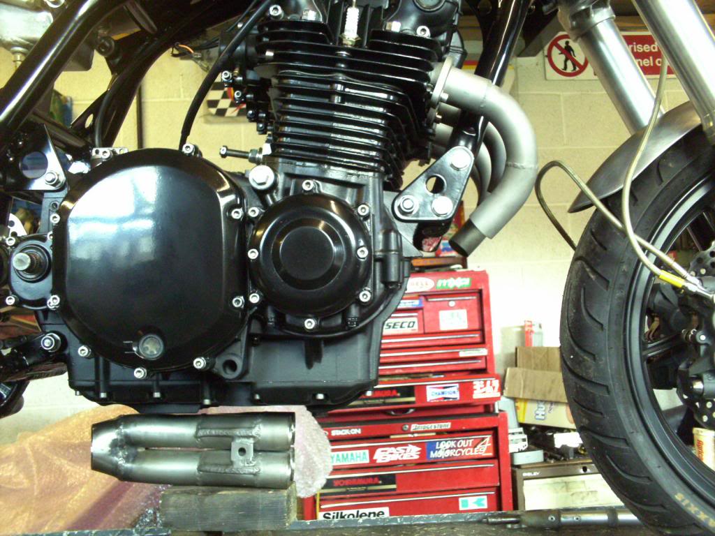 A couple of reclaimed r1 and a zx9r exhaust systems donated their organs to the cause.
