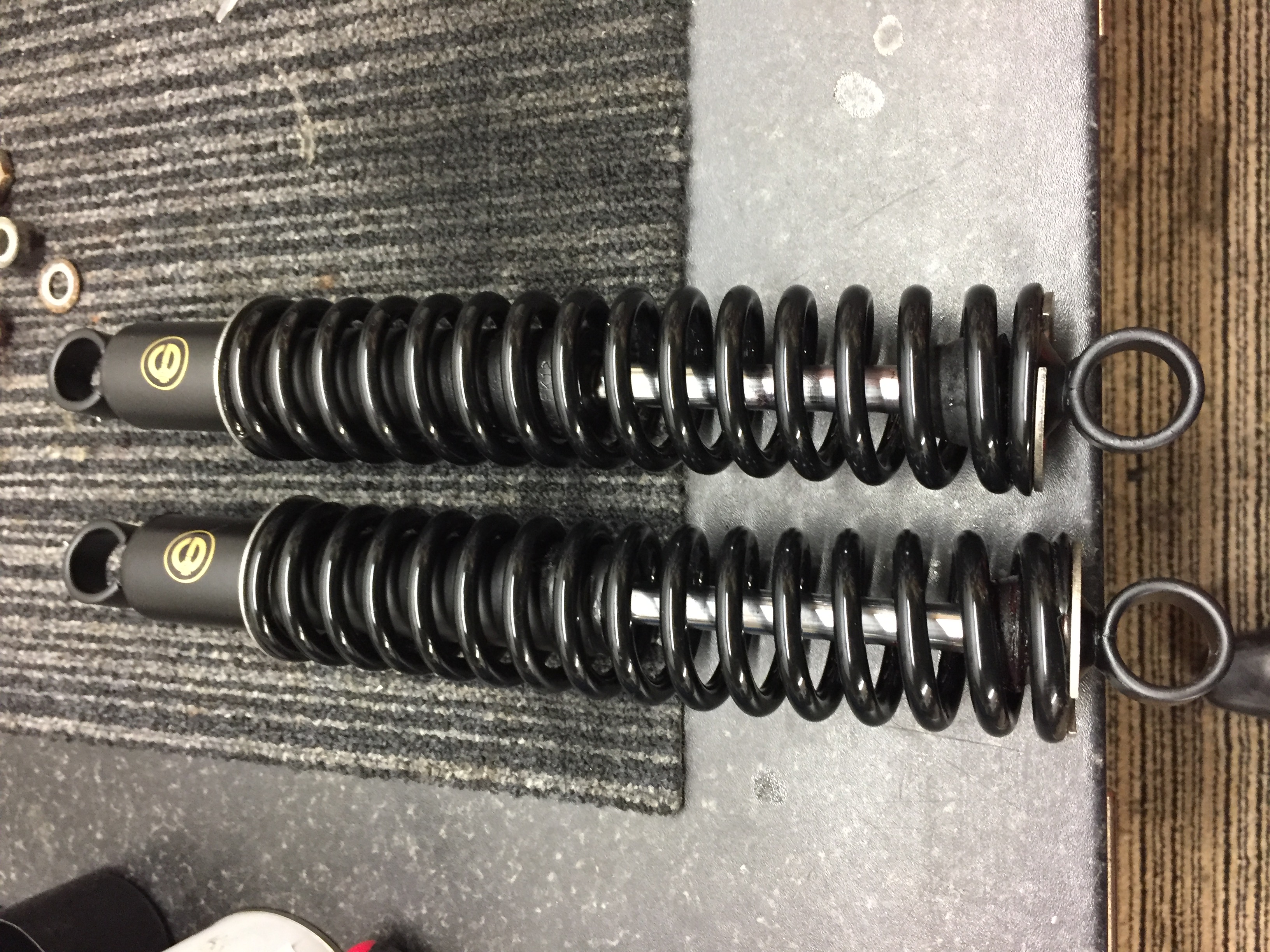 The original Girling shocks refinished , dampers still fine , springs powder coated , were painted black originally, nickel plated the collets in a jam jar with 5v
