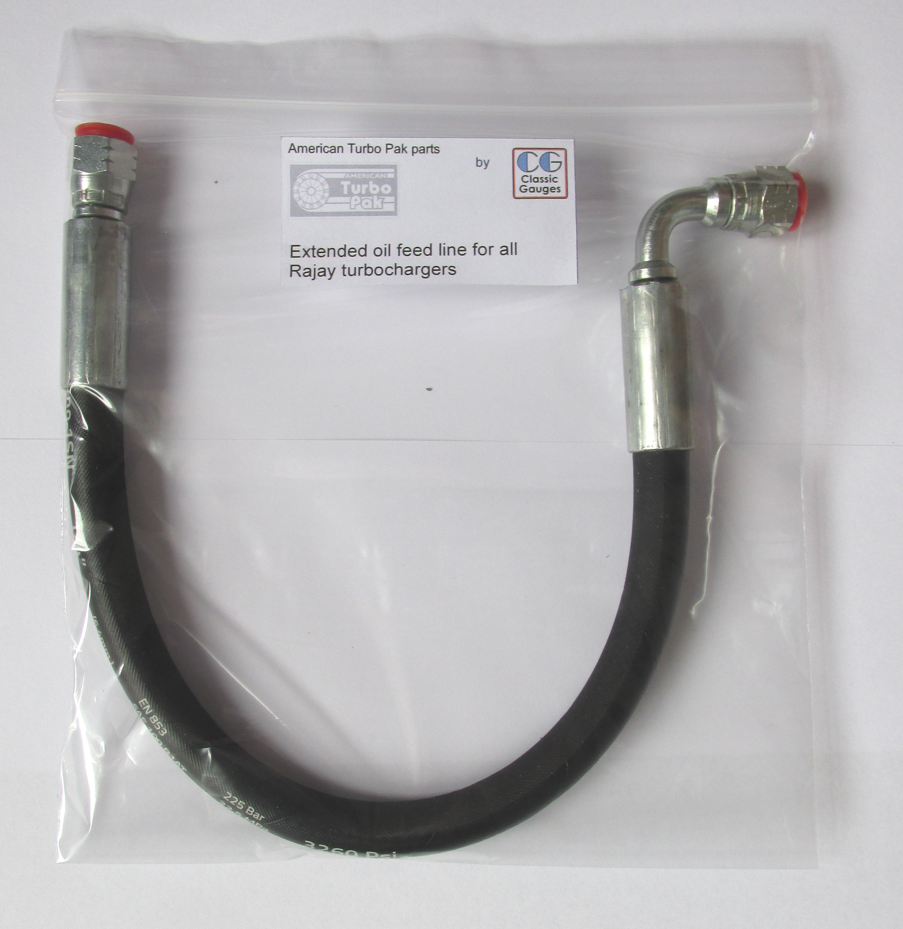 on mine ,I use goodridge braided steel hose and fittings like brake hose but larger dash ,also loop the feed pipe under the unit and up the back .so it feeds from the top ,but hang the pipe high above the unit so when you cut the motor you have oil in the pipe still feeding the bearing through gravity feed,also a longer pipe will allow you to connect the pipe up then place the unit in situ on assembly as it can be tricky some times trying to connect the pipe in situ