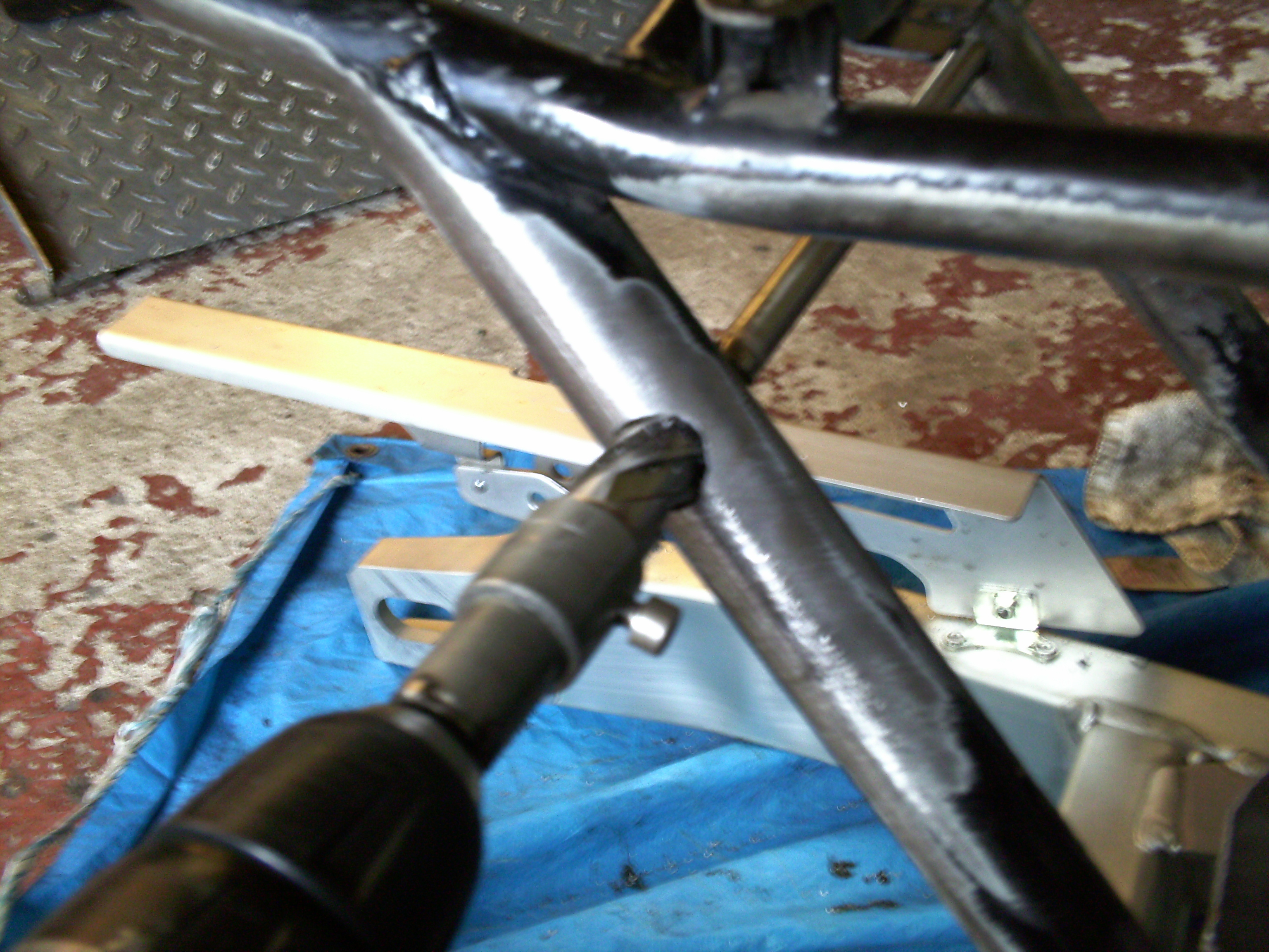 Shock mounts on the Z1R's XJR arm sit 15mm wider each side than on the B's so I've added a support tube to the new frame mounts that will also double as bracing for that corner