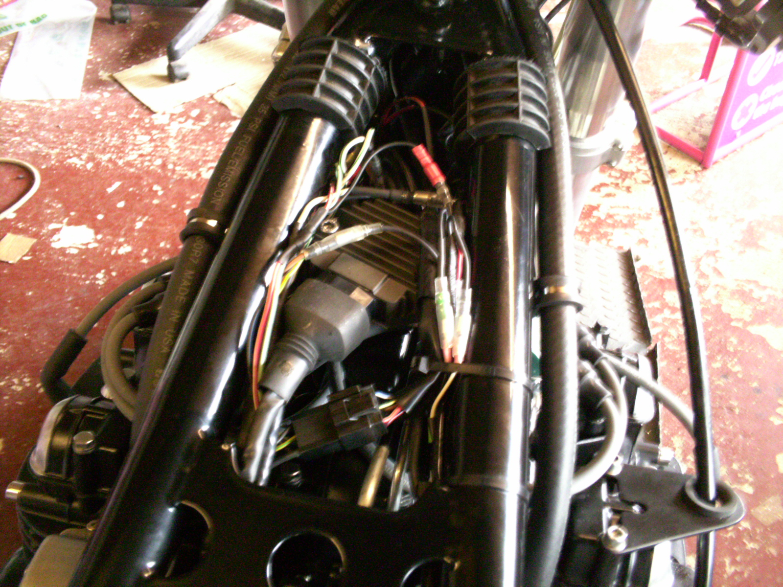 Rest of the wiring , horn and reg/rec just fits under the tank