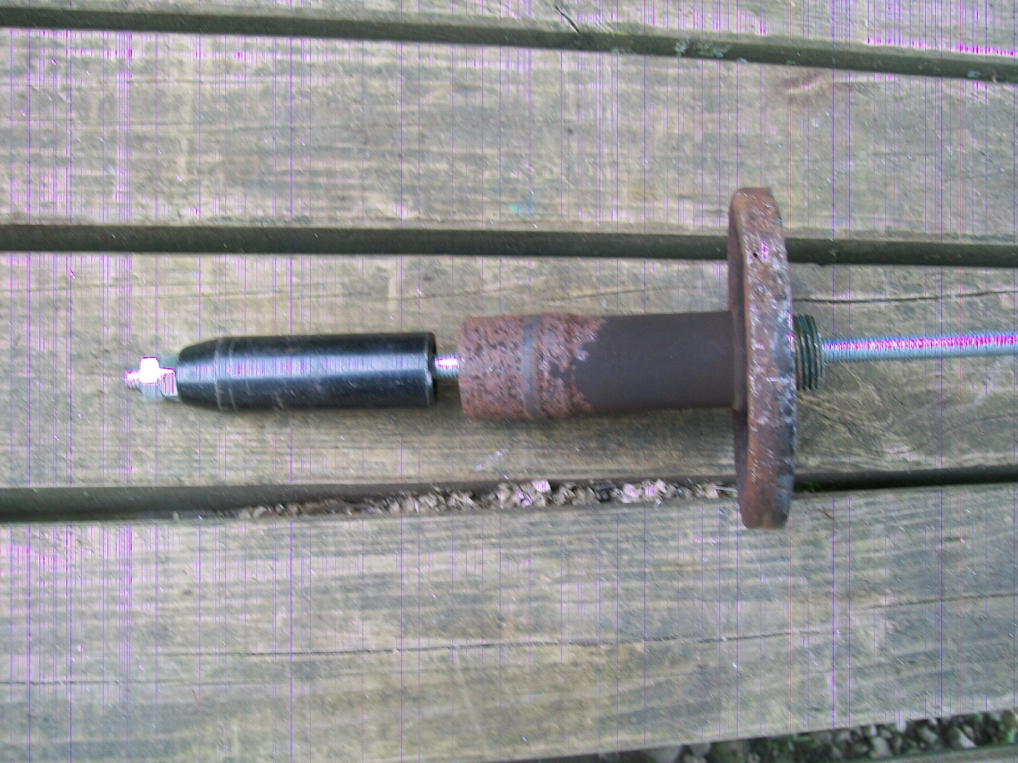 End cap of the pipe. It was just crap / rust holding it on. Made up a slide hammer and found that a plumbing fitting can be threaded in the end, then gently persuaded out.