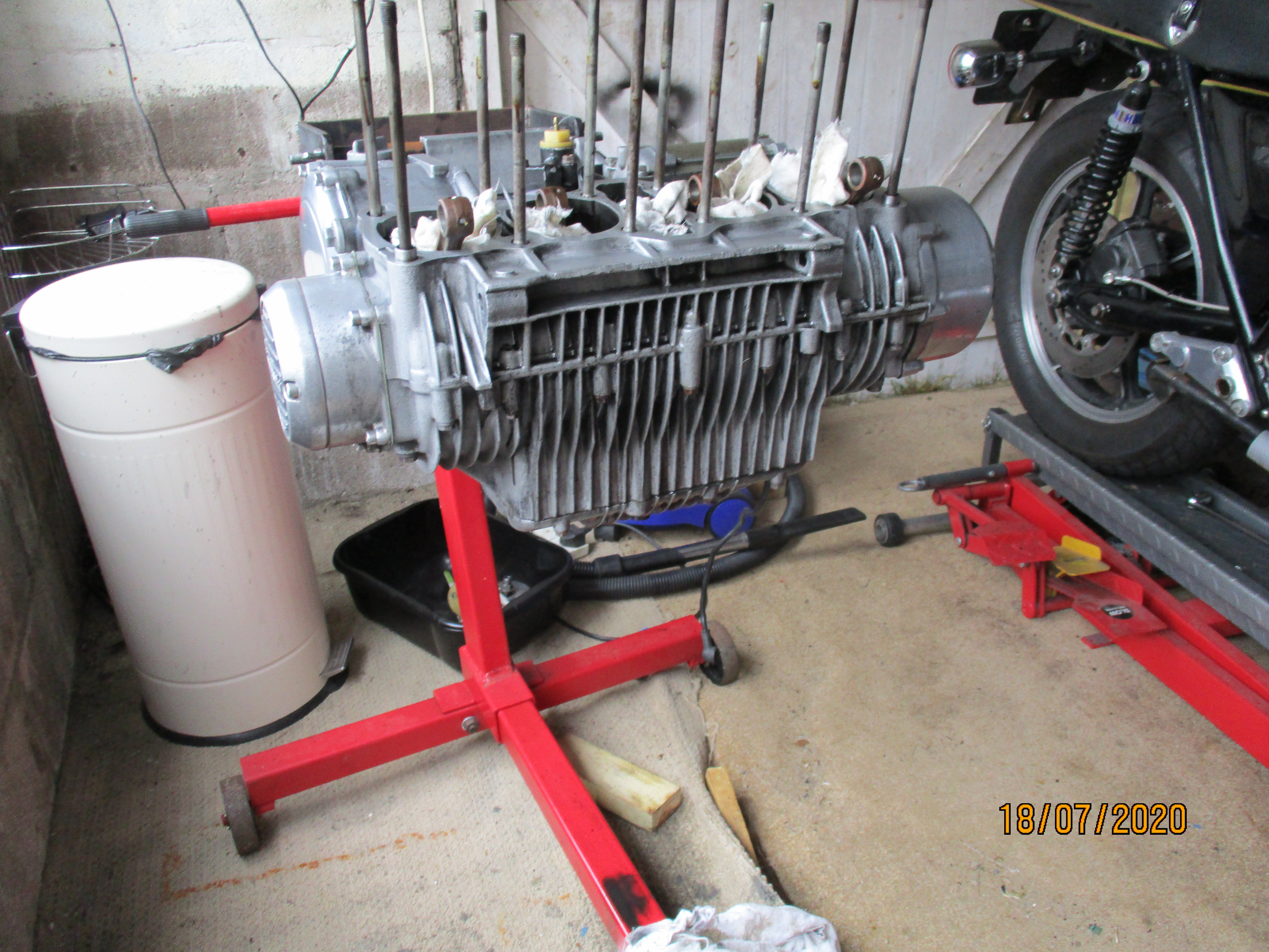 I haver decided to take the whole engine apart to have the it sprayed black. The rebore has been completed and have new pistons from IMD. The cylinder head is off being welding repair at the rev counter drive and barrels are having damaged fins repaired.
