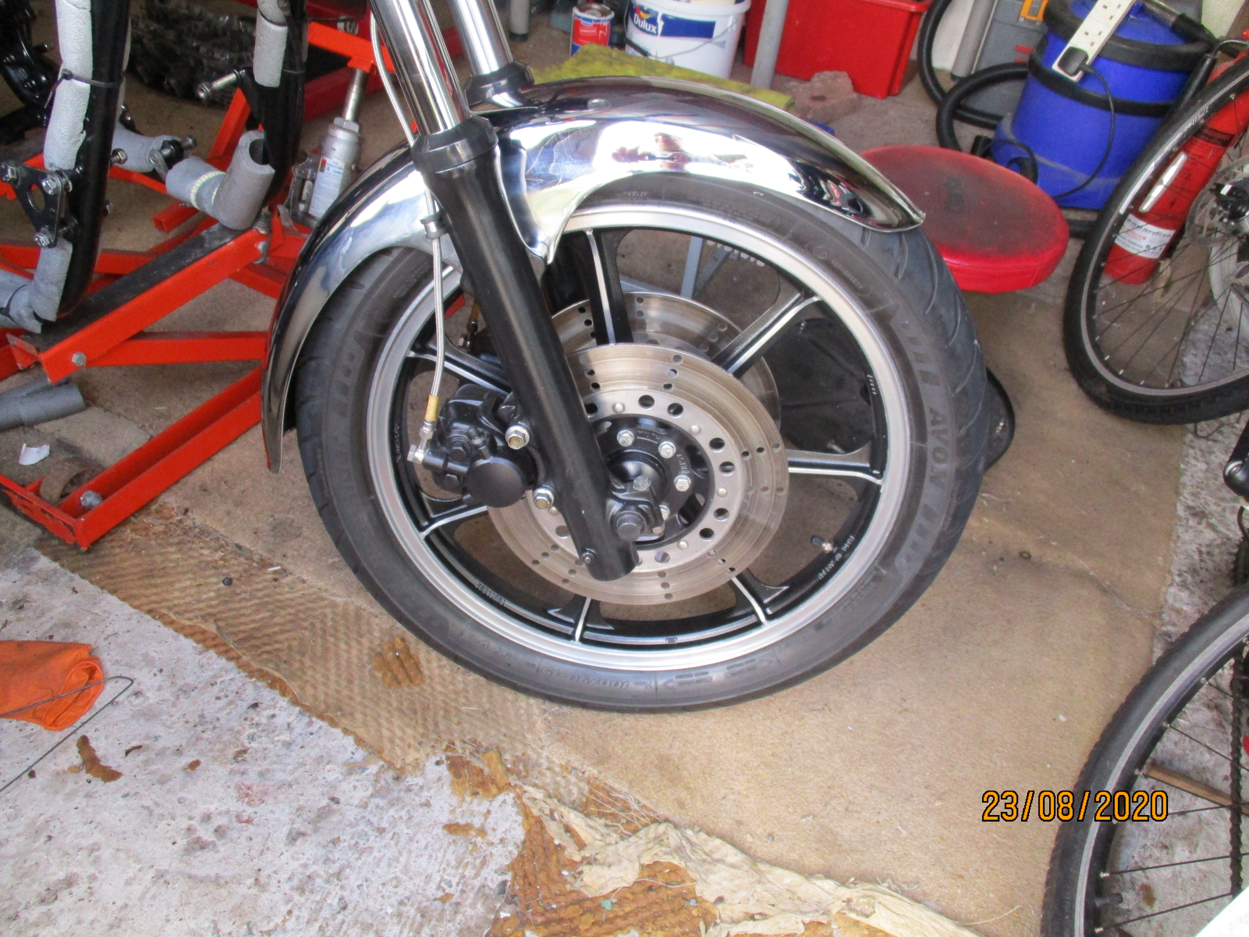 In the mean time i have repainted the lower fork legs, wheel, and brake calipers.