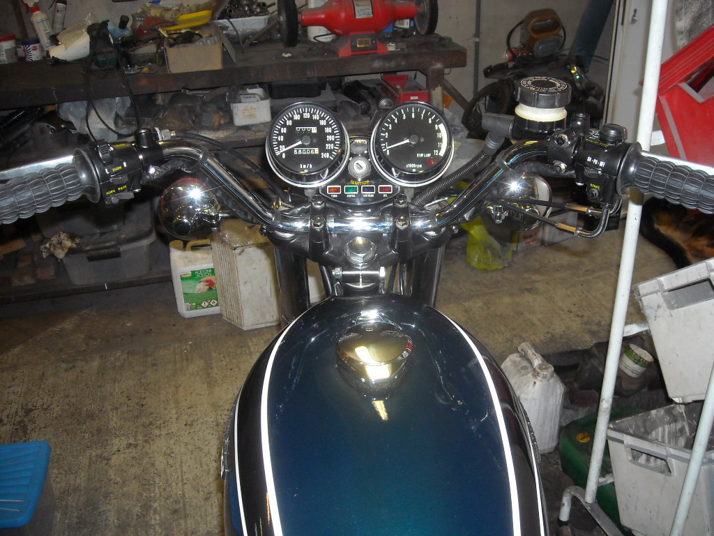 As you can see the clocks are in place and the wiring is done. Just a couple of mirors and a clutch lever bolt to attach. Notice the key holder rubber instead of the "black hole".