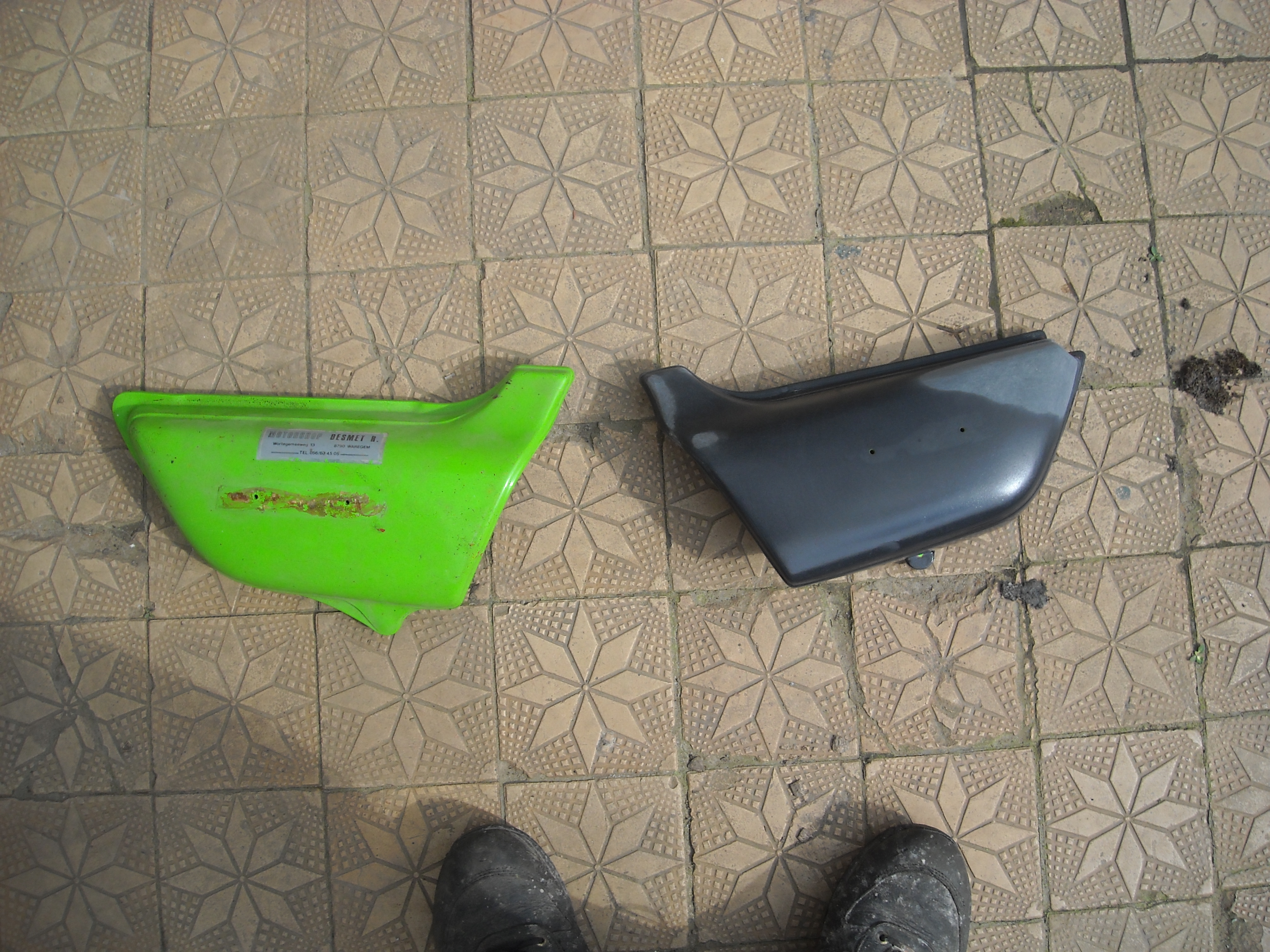 You can see on the right hand side cover how it looked before stripping, remains of glue where the "Z1000" badge was attached,