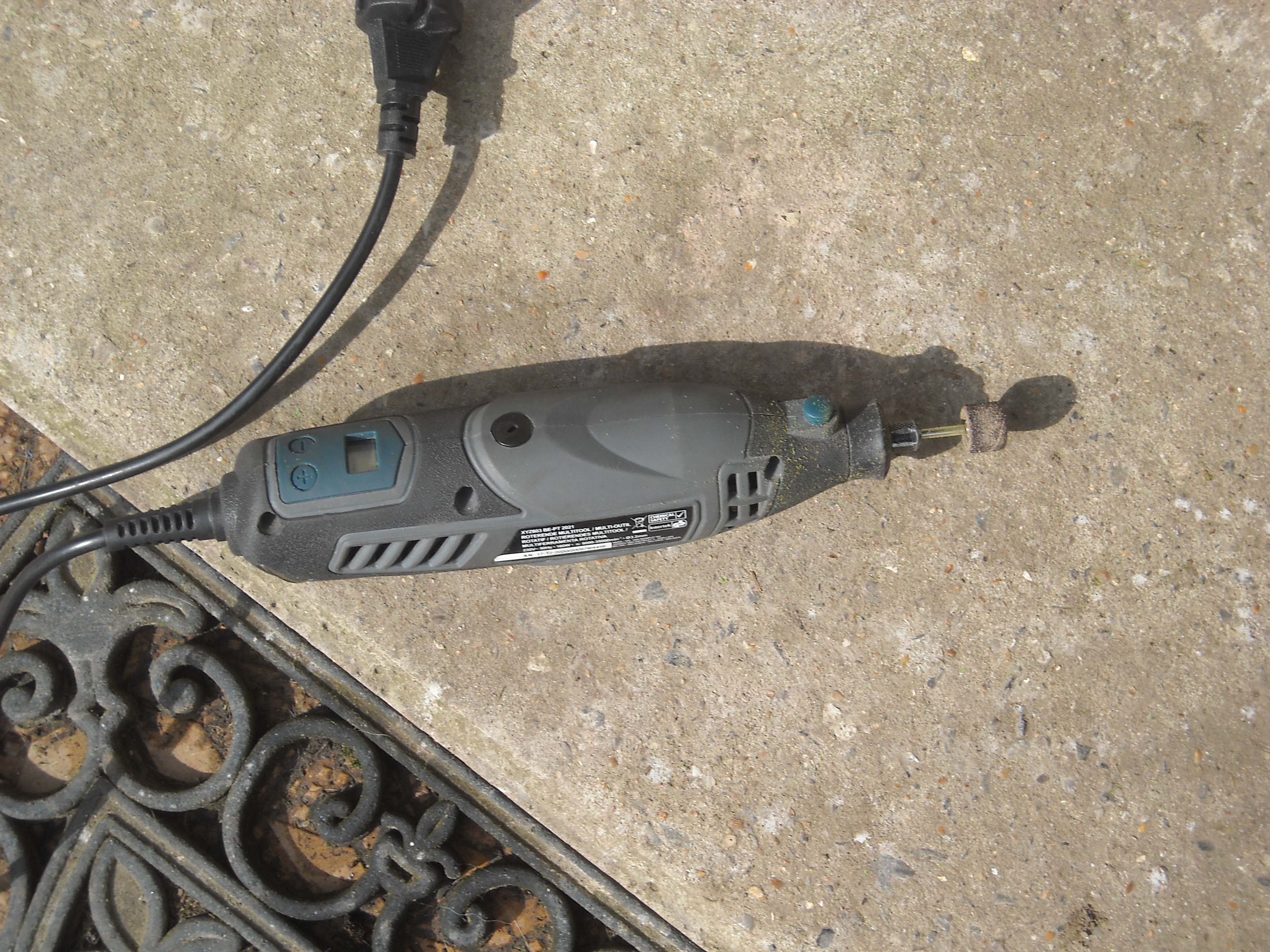 The tools to strip the paint off are again the circular grinder and a small drill that I use sometimes to do modelling.