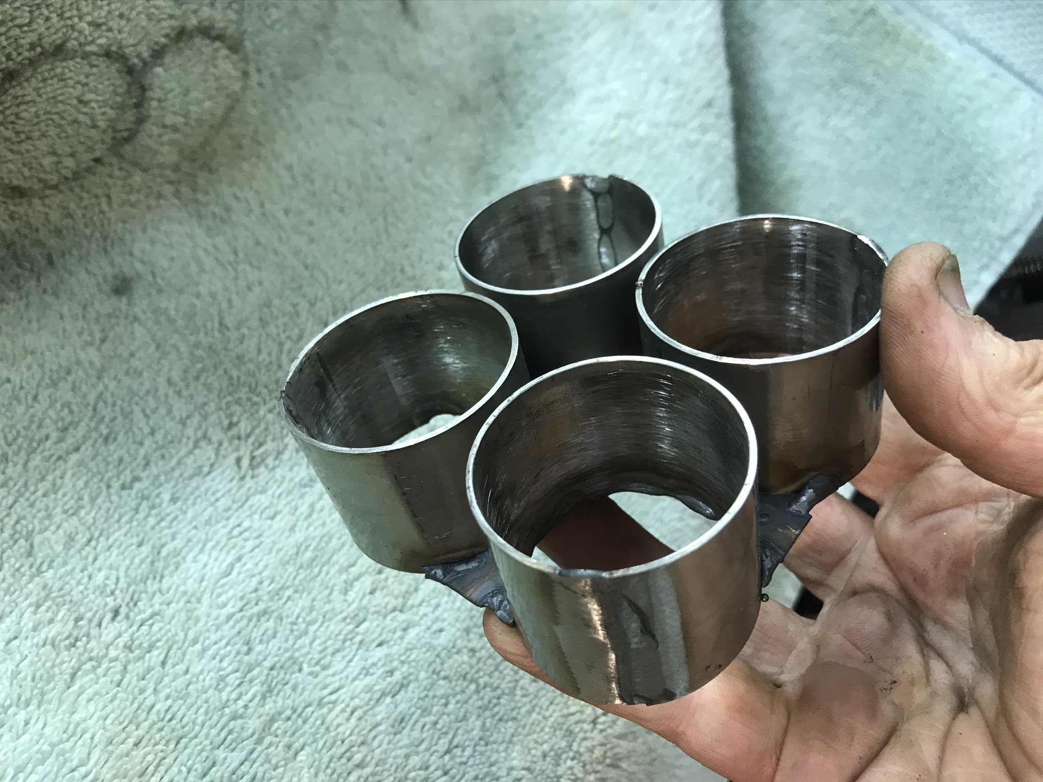 I found a socket just the right diameter and fabricated four tubes onto a back plate. Cut the rotten tubes off and weld the new onto the old.