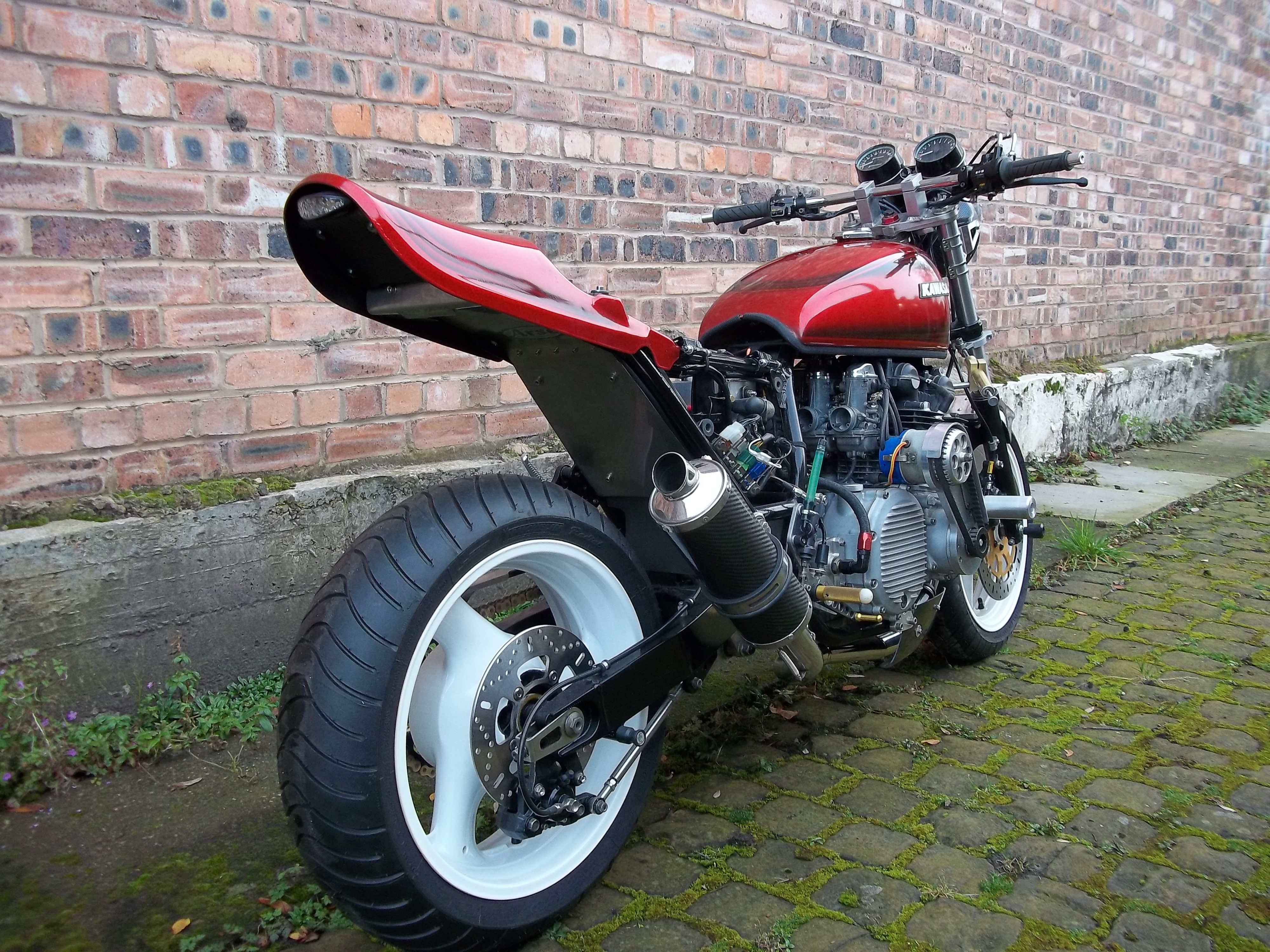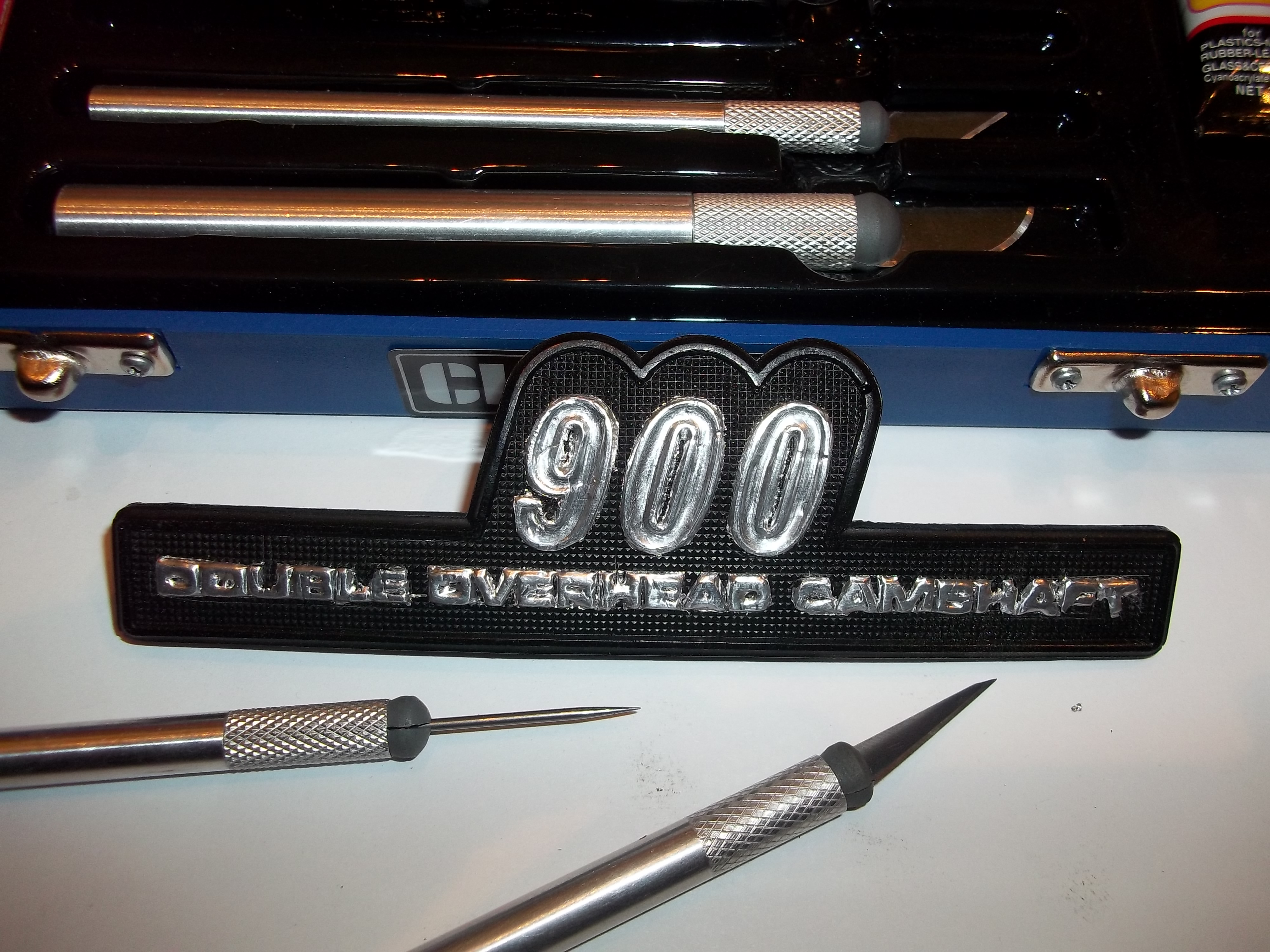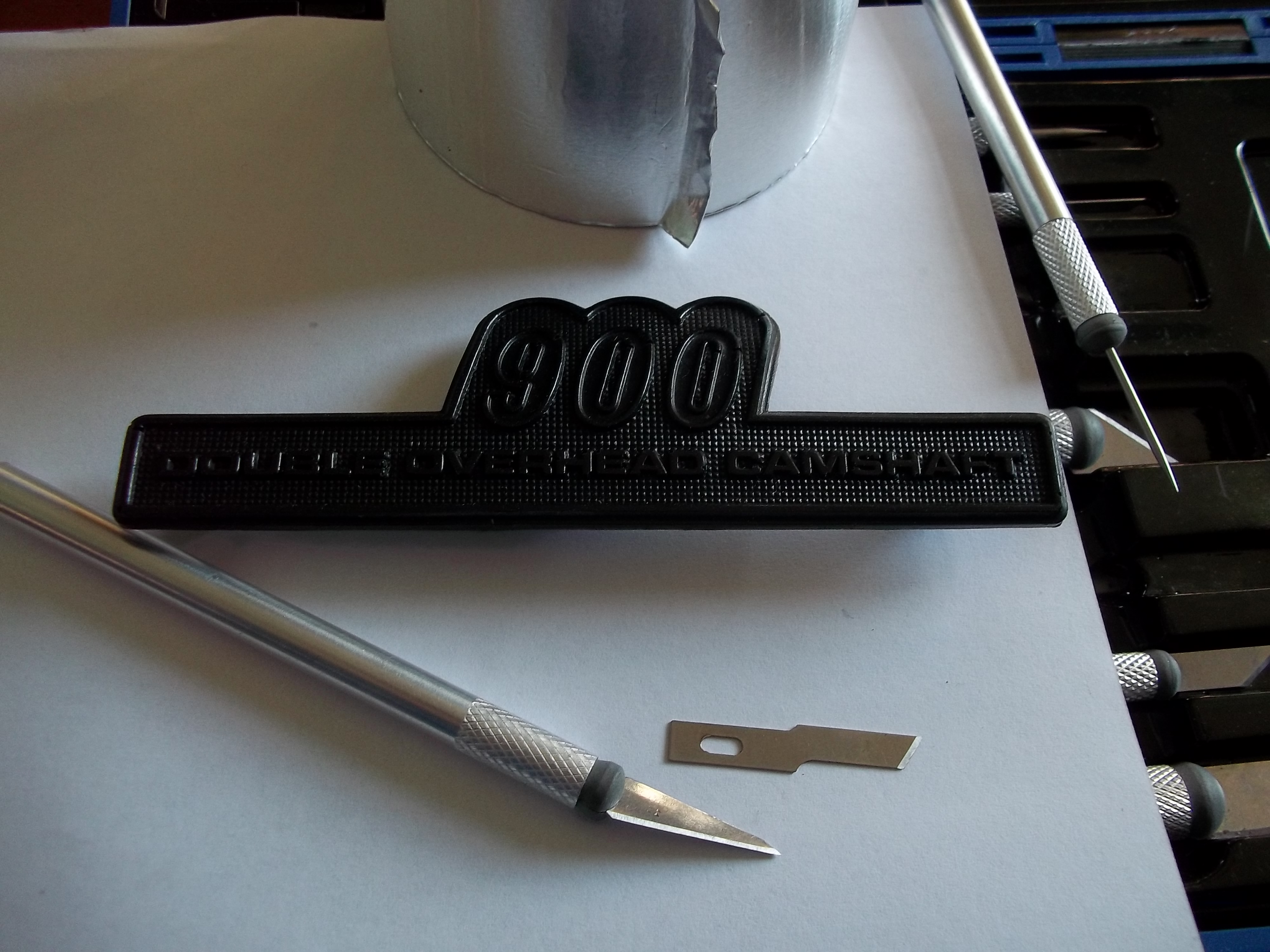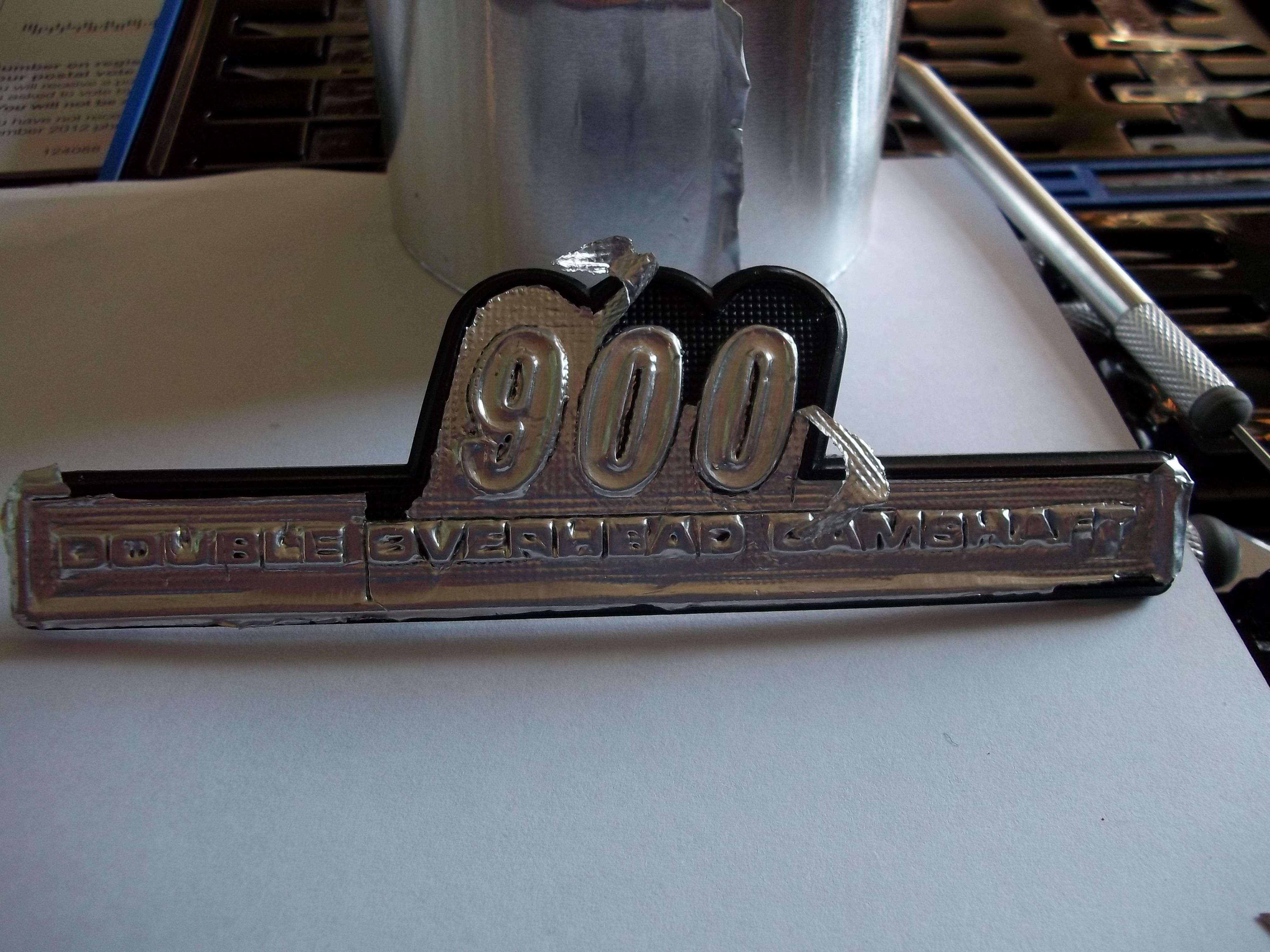 Still a little unsure if this is the "look" i want but if it works out i'll make 2 stainless brackets to fix off the engine mounts underneath the cradle, then use some 3M carbon look all over and fix the 900 DOHC badges along the bottom.