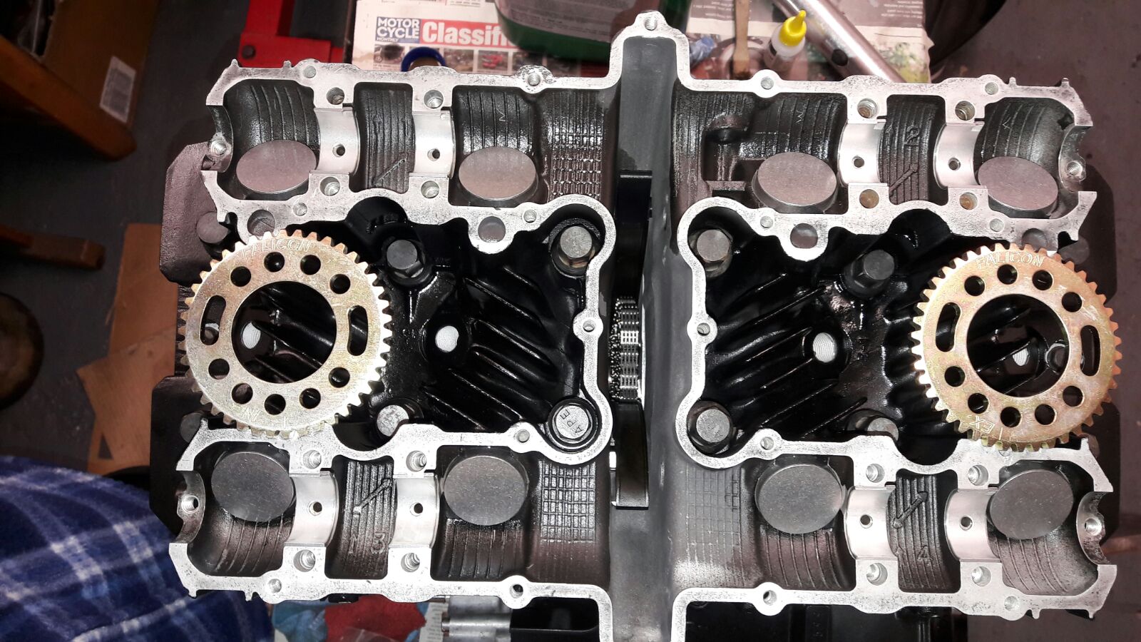 ok quick up date head has had new seats cut, vale guides installed and had ports matched/stage 1 flowed all done by Roger Upperton. new valves, springs, followers fitted along with slotted sprockets new cam shells and the cleaned up and deburred cam. head bolted on with hd studs and nuts