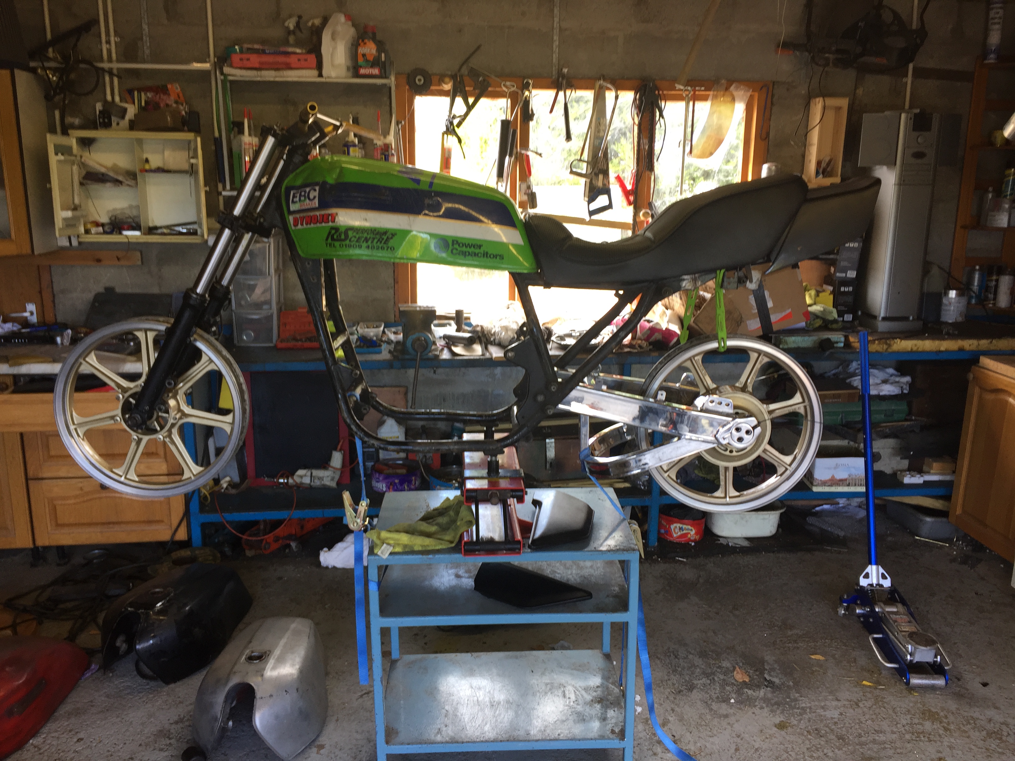 An expanding collection of parts pretending to be a Z1100R and a Yamaha FZ750