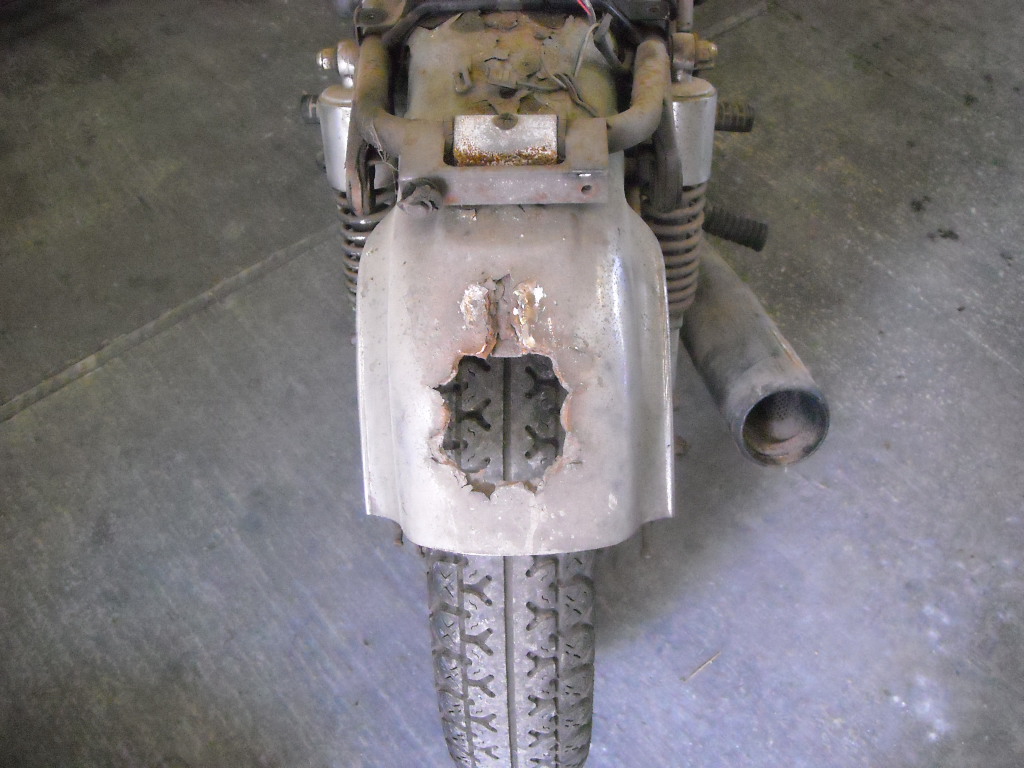 As you can see the rear mudguard was chopped off, it was far beyond the point of repair anyway, it was really rotten.