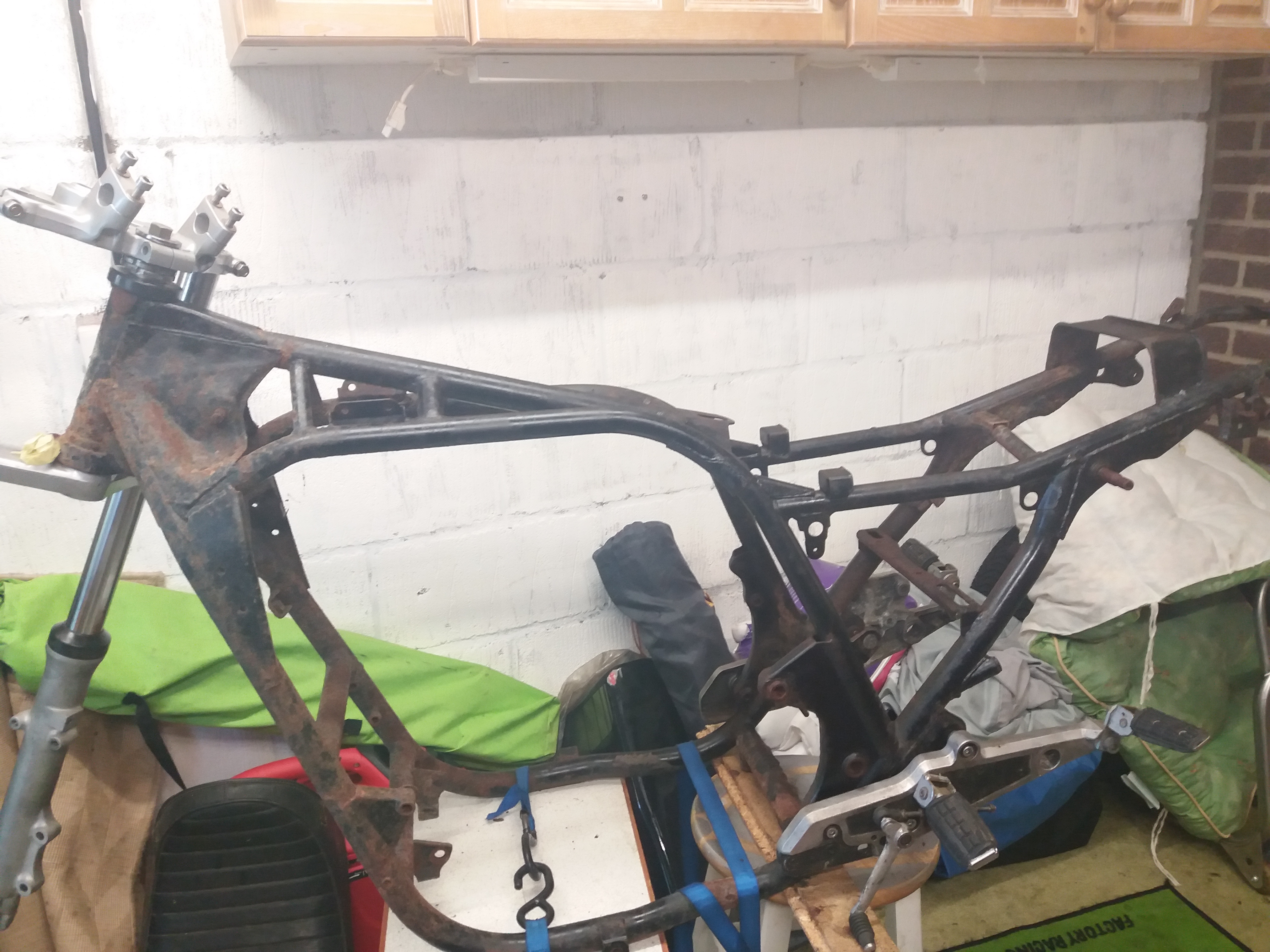 Hi all, lovely weather, at least its warm in the garage. Lockdown has accelerated all my projects, so I have been working on this Kawasaki gpz1100b1. Started off as a frame from Morcambe, with the plan to use parts left over from previous builds. Strangely enough, I still have those parts and many more now.