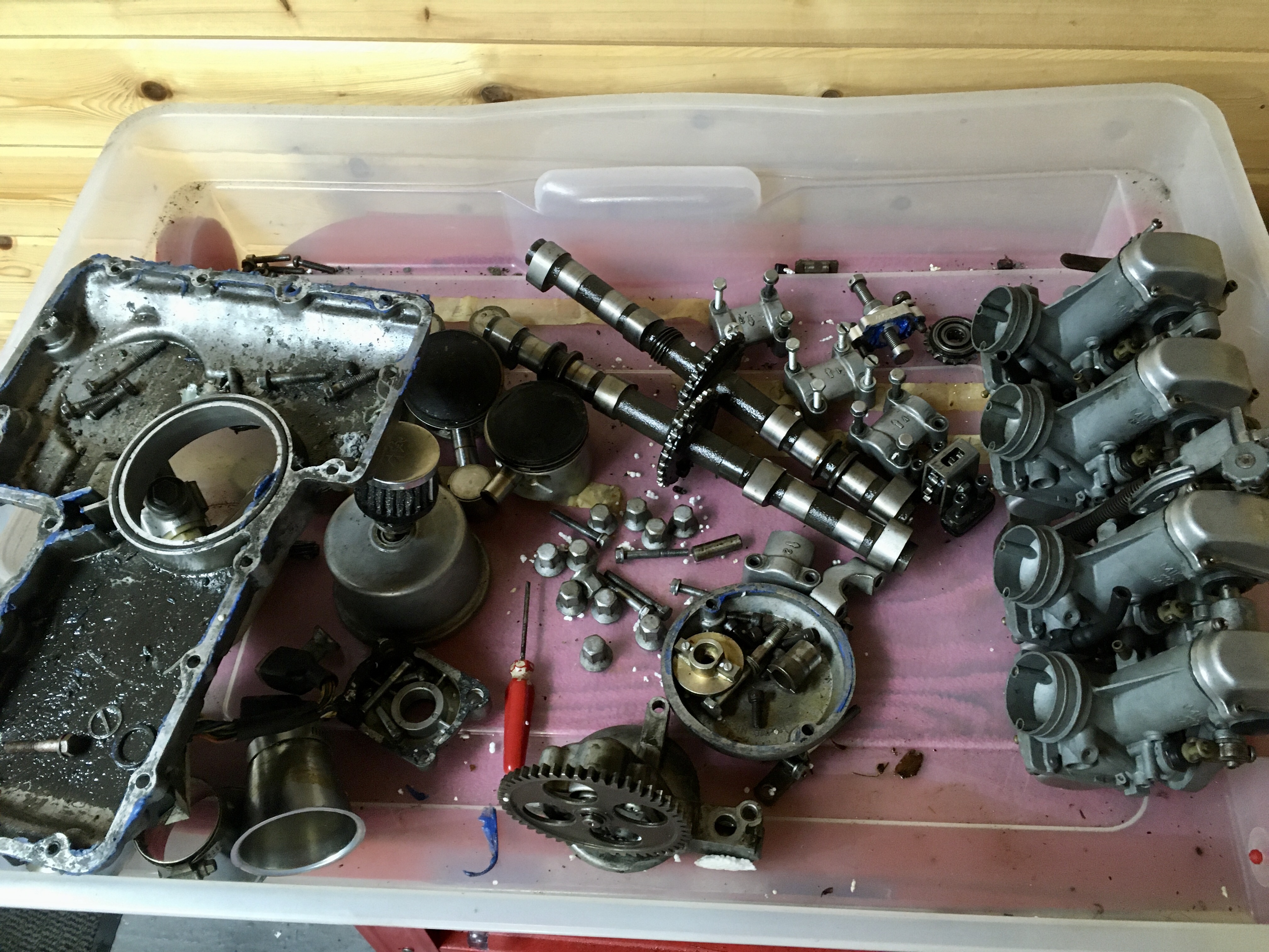 Sadly, as I said it’s in a bit of a mess and already in bits.Now, it only owes me just over £1k so it’s got to be worthwhile trying to sort it out. Whoever has done work on this previously should never touch a fecking bike again? He obviously had a love of blue hylomar! And didn’t really mind what bolts he used.........