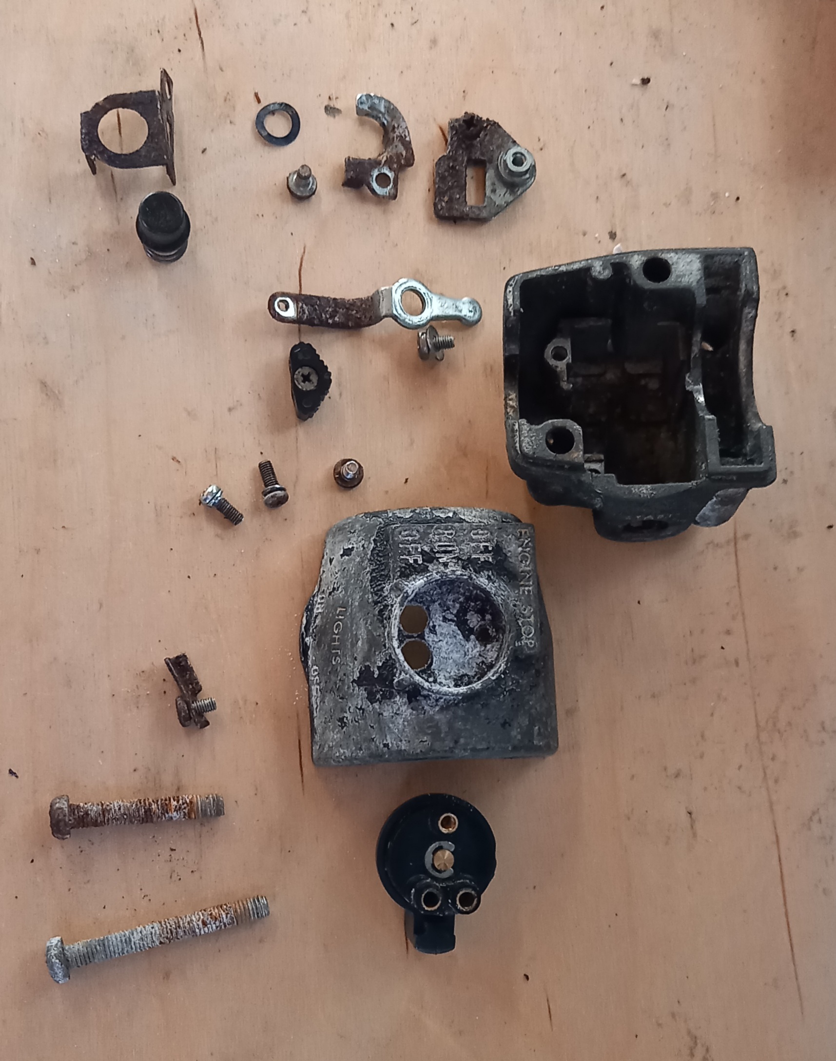 Well...started by stripping the bar switches and, considering how grungy and paintless they are, they came apart no bother Not a knackered screw head anywhere! Result in my book! But best not speak too soon eh?
