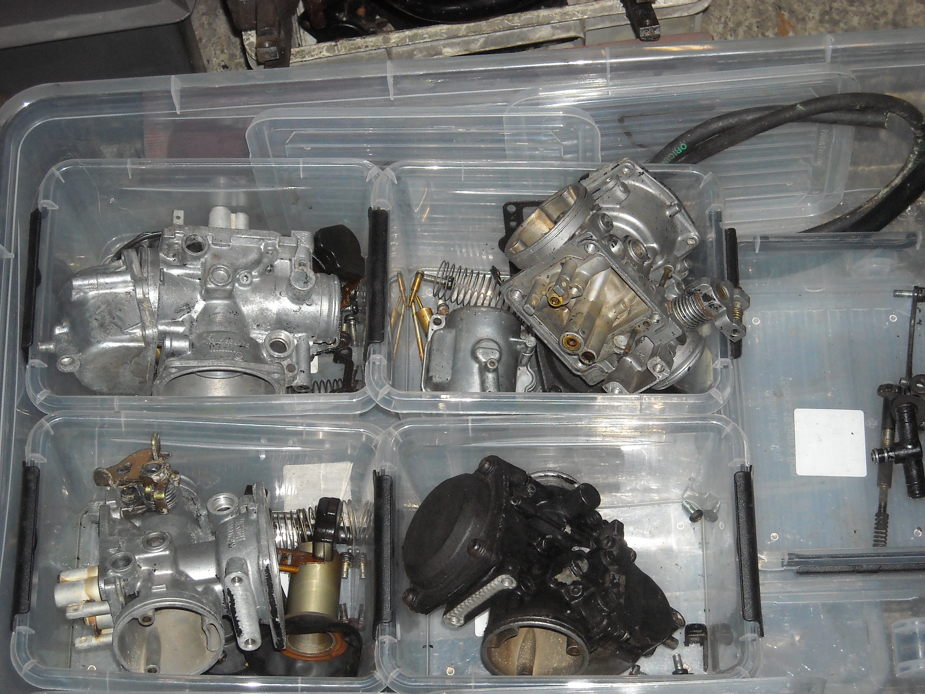 After the separation of the carbs, I removed all the parts I could and soaked them in cellulose thinner.