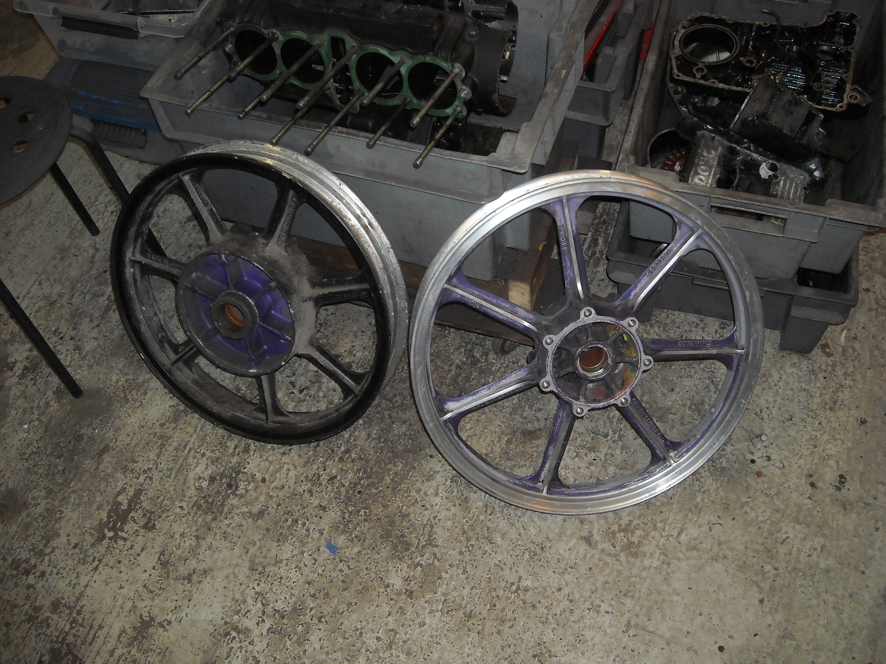 The wheels were the next parts. I removed the old bearings and stripped the wheels completely.