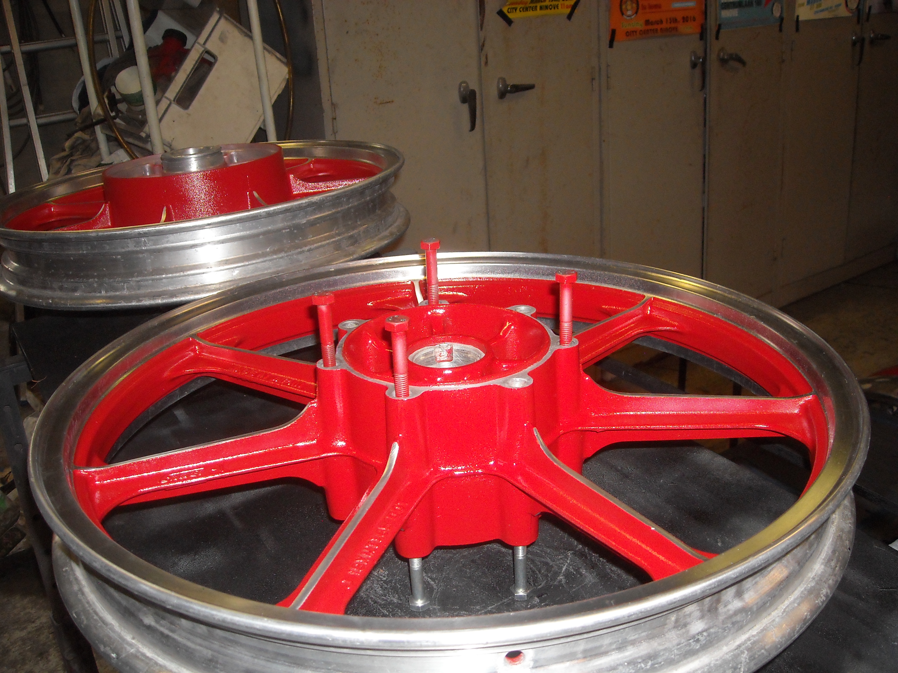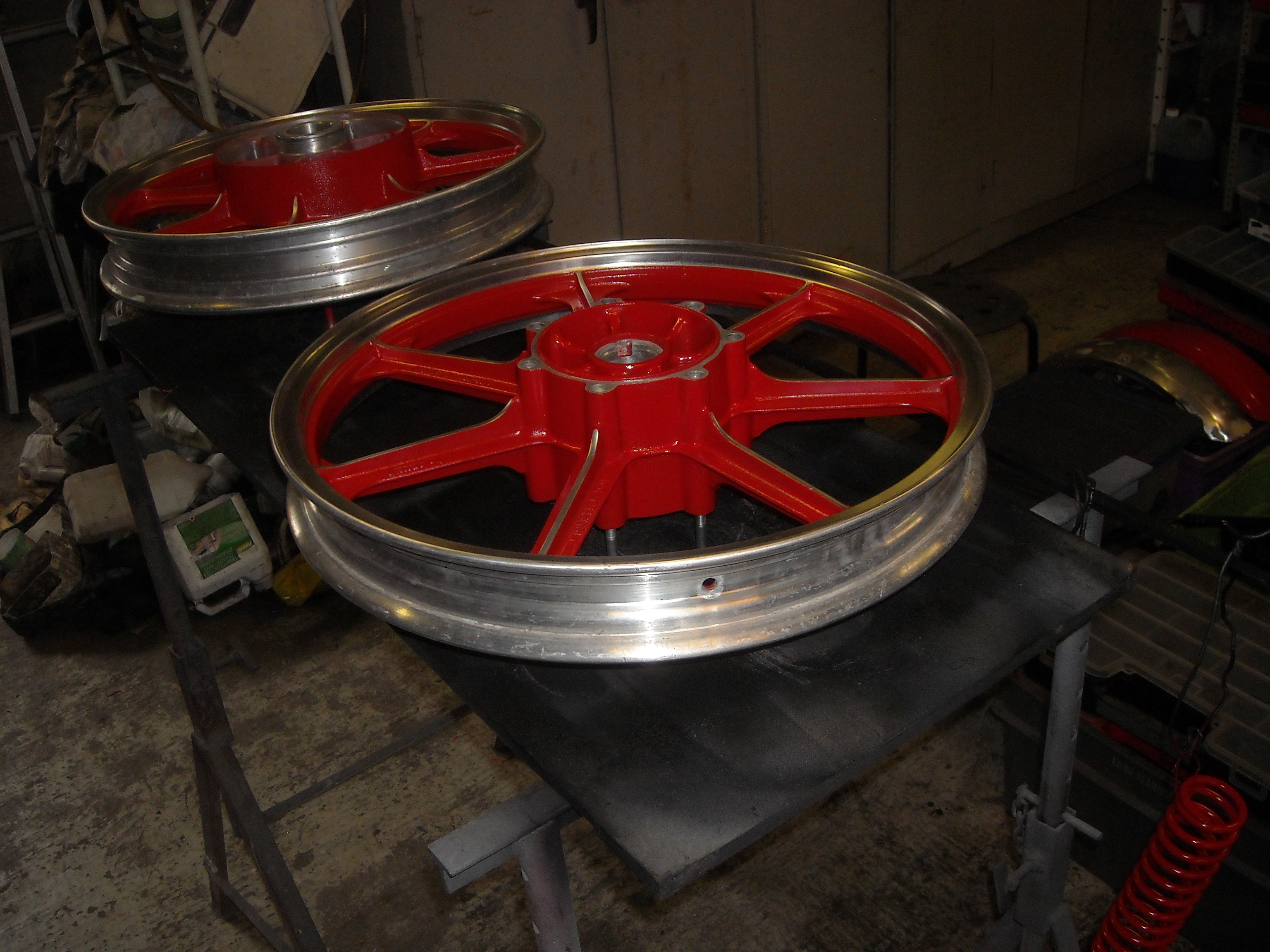 Now I only have to polish the rims and then I can degrease the wheels, tape the parts off that need to stay bare aluminium and spray them in firecracker red.