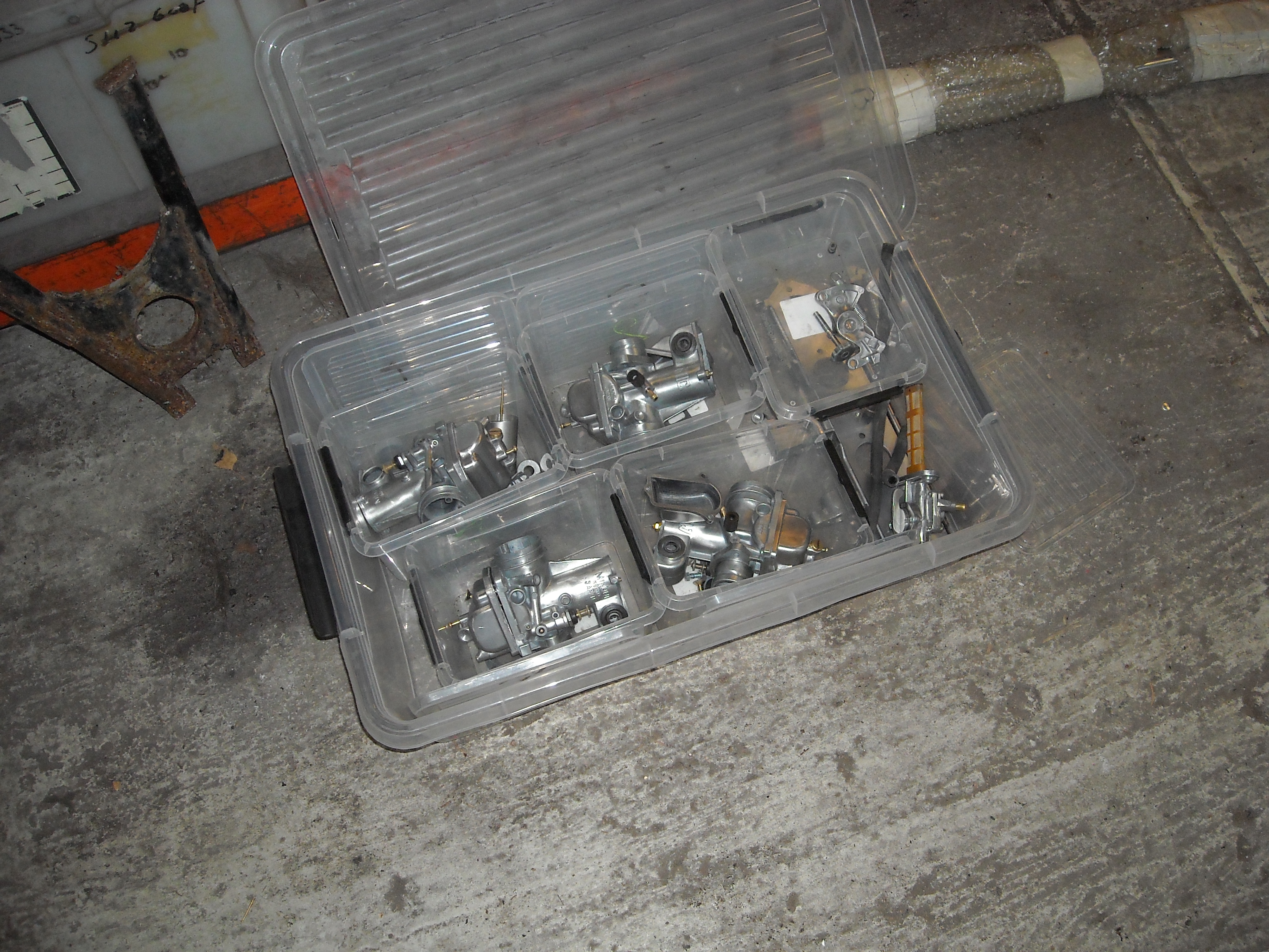 * the carbs: they're taken apart, ultrasonically cleaned, polished and they received new Keyster parts.