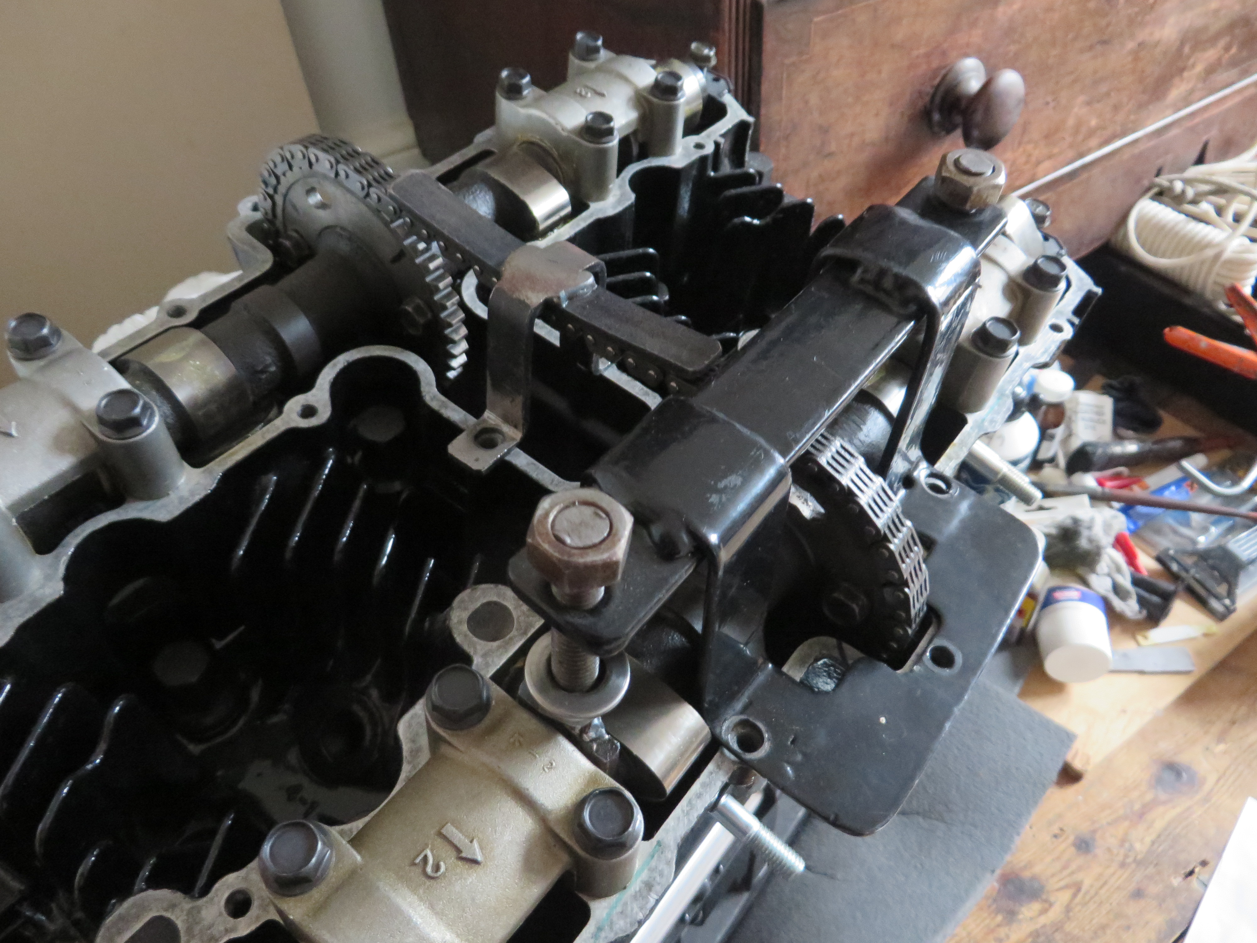 Got the cylinder head back from Seagar Engineering, cleaned, fixed and skimmed. I painted it with Simoniz Gloss and fitted it to the bike - all good so far. However 4 of the bolts on the cam chain caps won't torque to spec so the head is now back off and awaiting a helicoil kit from Bikers Toolbox. :oh