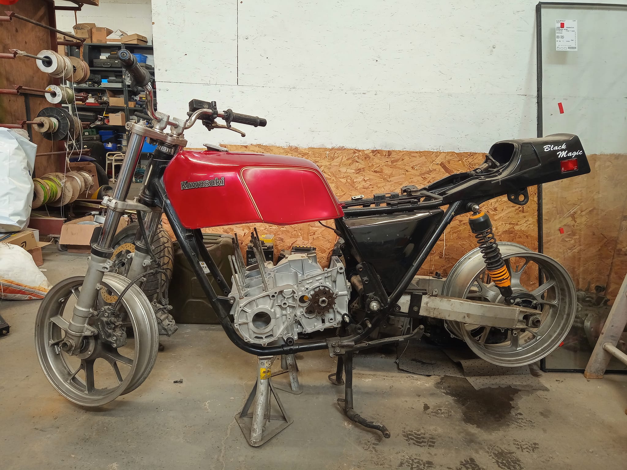 I had an idea recently to build a poor mans version of the once un loved but now sought after Mk 2 Z1000. I have bought a 1000 S T frame , a couple of panels . Having a few other projects and parts about I had already found some ZZR1400 wheels and swing arm (190 tyre ) which were going into another build but a slight change in direction and there is enough room in the back of the S T frame and spare .