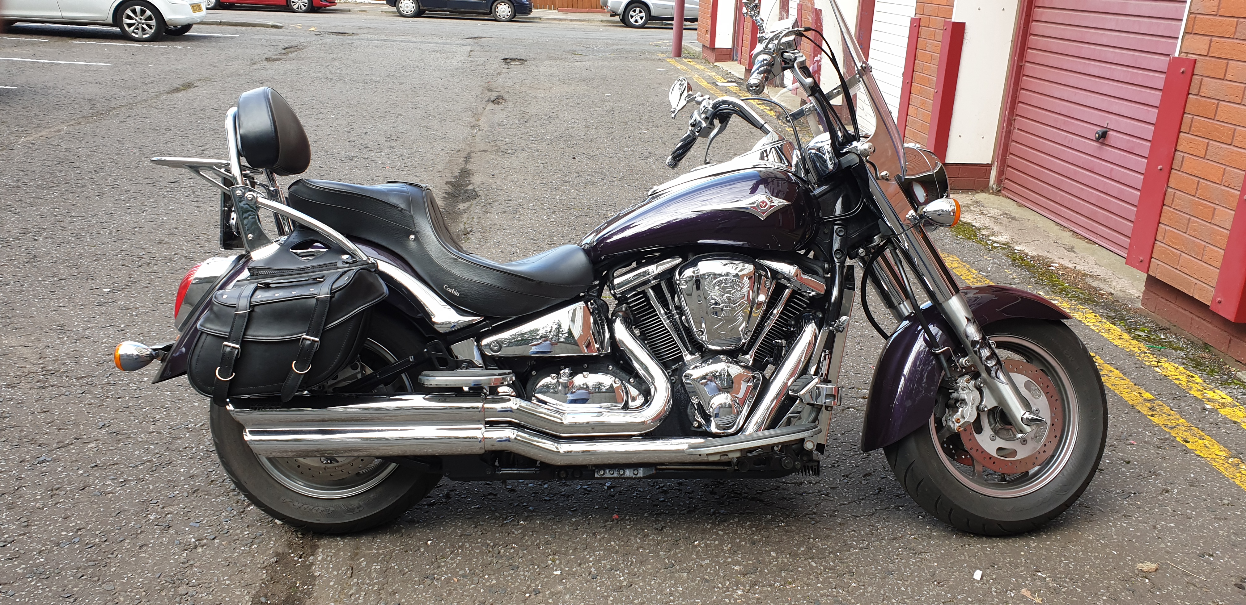 - Here is the Spectre I am working on at the moment, came to me with a knackered starter motor, 750 unitrak clocks, weird set of idiot lights, wiring a total joke, fork seals knackered, seized brakes which I am currently working on and that stupid blue frame. Runs sweet though, not sure what that exhaust is off. Bought it off Ebay few years ago fir £400 as a non runner. It been in shed since because of bereavement (my wife passed away) and I have been very unwell, in and out of hospital for past few years. Will put some more pics on later of others.