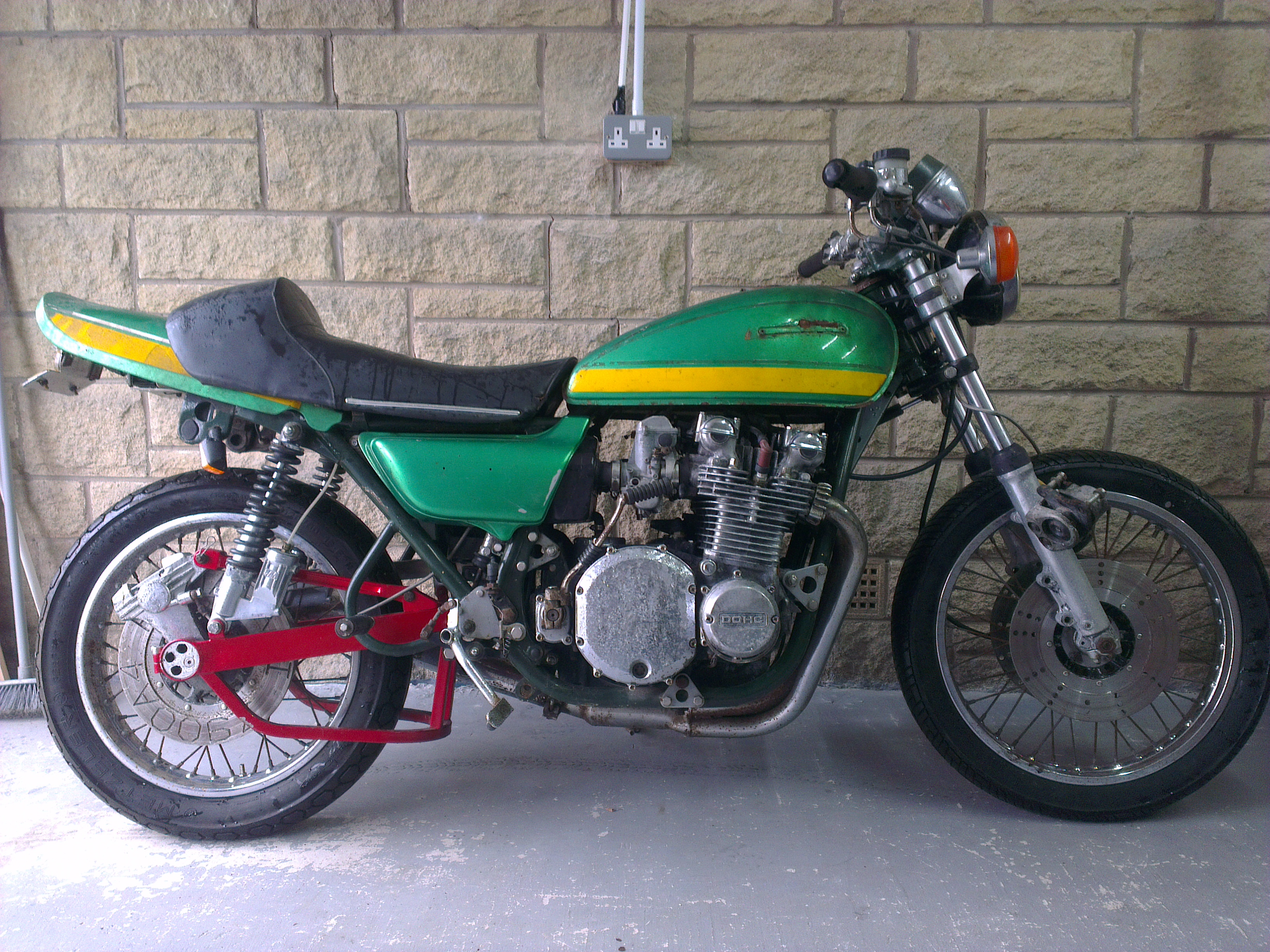 Evening all. Just joined this site. Some luvverly machines here. I've been a Suzuki man all my days but dont hold that against me . I've just obtained the only other bike in the world i would have that wasnt partly Suzuki. A 1975 Z900-A4. I already have a 1978 GS1000, A 1991 GSXR1100 and a Harris Magnum with a turbocharged GSXR1216 engine. There should be a picture attached of the Kawasaki!!!!!! but if not i'll try again. There are a few mods to this one and it needs a fair bit of work. Just trying to decide if standard or modified would suit it best. They do look stunning standard but i dont really do standard. We'll see.