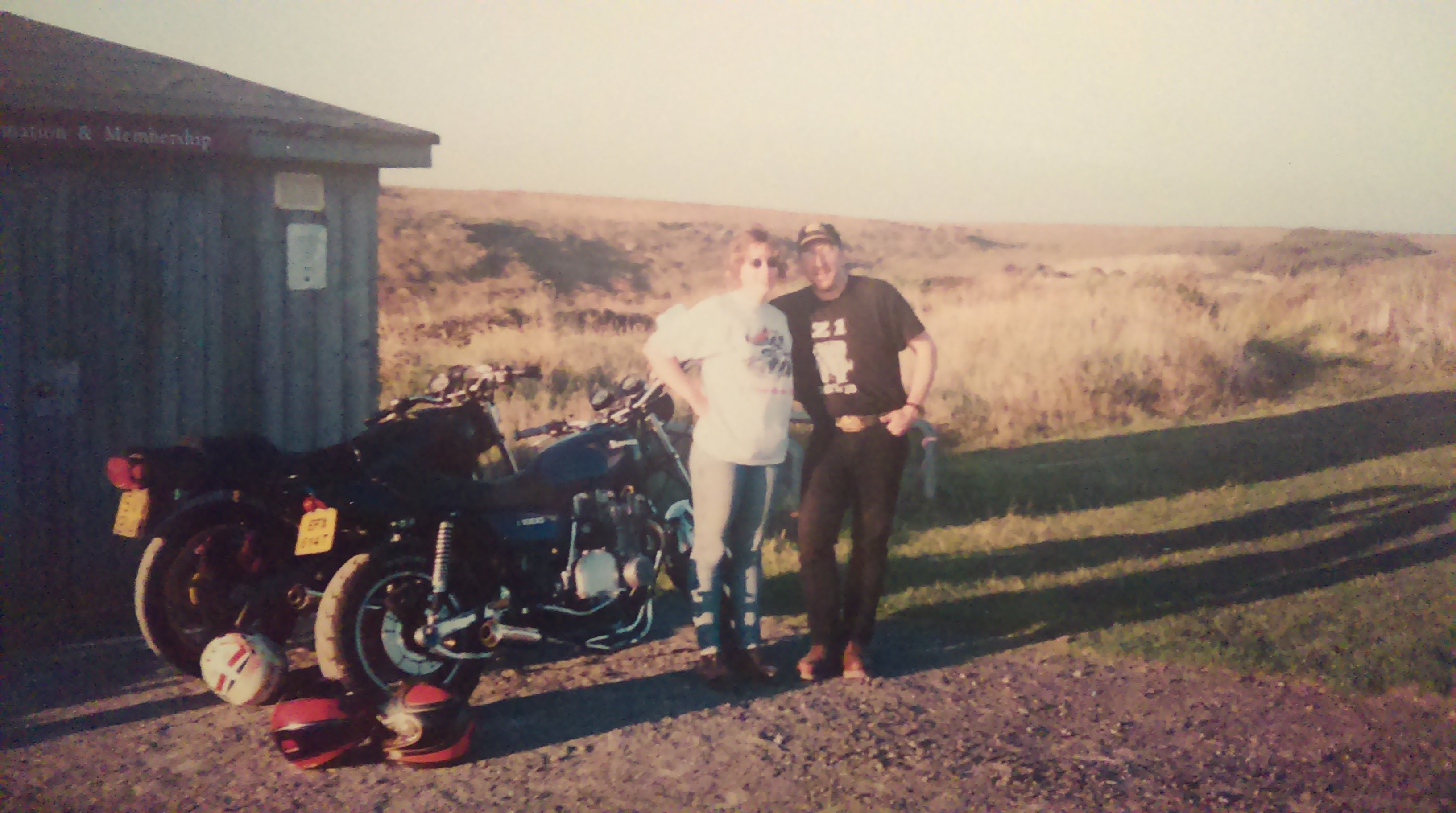 This pic is about mid 90's somewhere down on the Lizard in Cornwall with my Z1075. Here it still has the 16 inch LTD rear wheel although that was good rid of soon after. It was a proper wrench selling this bike - and it even appeared in the Owners Club mag at one point. Obligatory T-shirt!